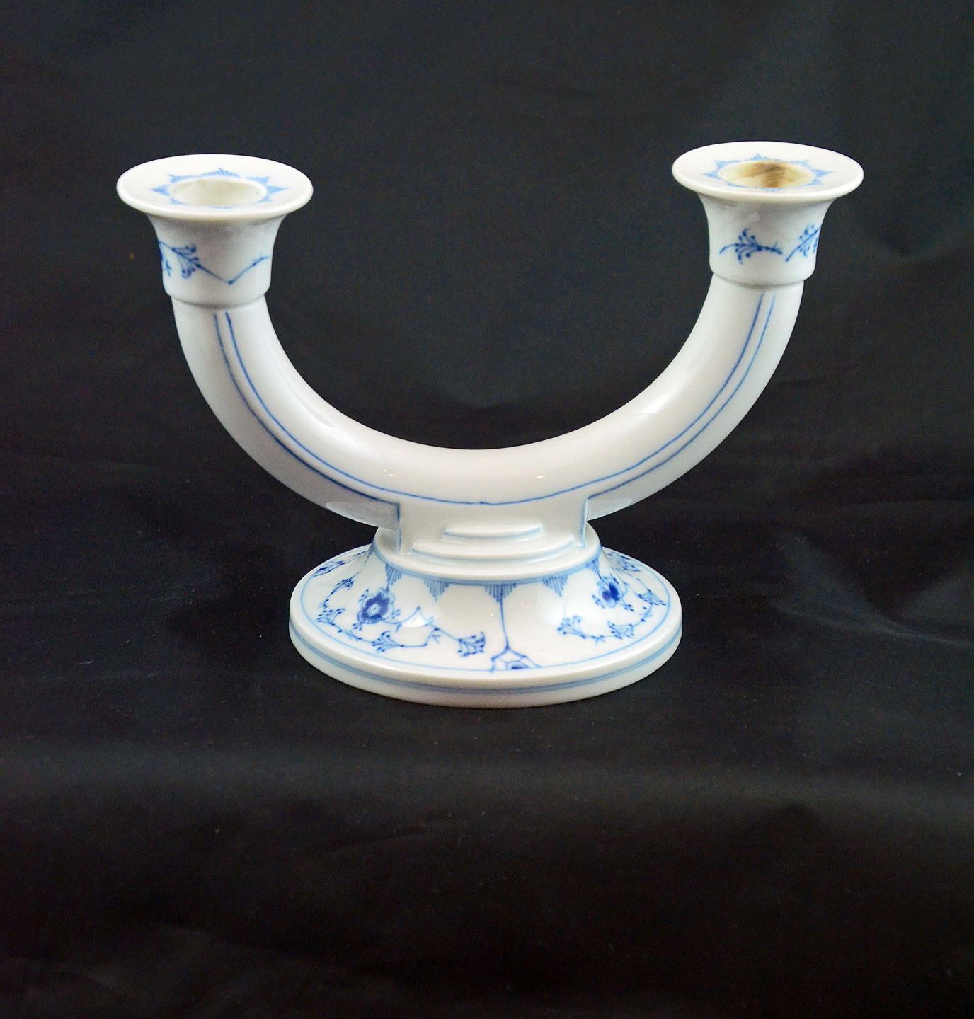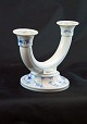 To armet lysestage (nr. 235) i musselmalet; blåmalet skelform fra B&G. Bing og Grøndahl stagen er 1. sort. og i meget pæn stand. Lysestagen er produceret i perioden 1948-1952. H: 13,5 cm. B: 20,5 cm.