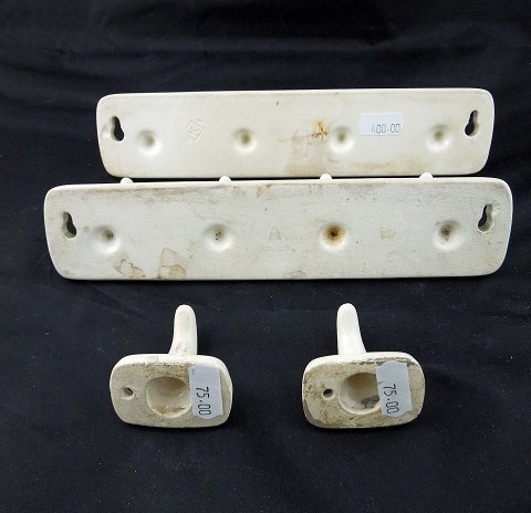 Hvide fajance knagerækker fra Aluminia. De er i god stand.