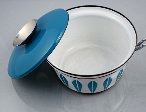Lotus kasserolle i emalje af Grete Prytz Kittelsen for Cathrineholm og Lyngby. Den er i pæn stand. H: 8 cm. Ø: 16 cm.