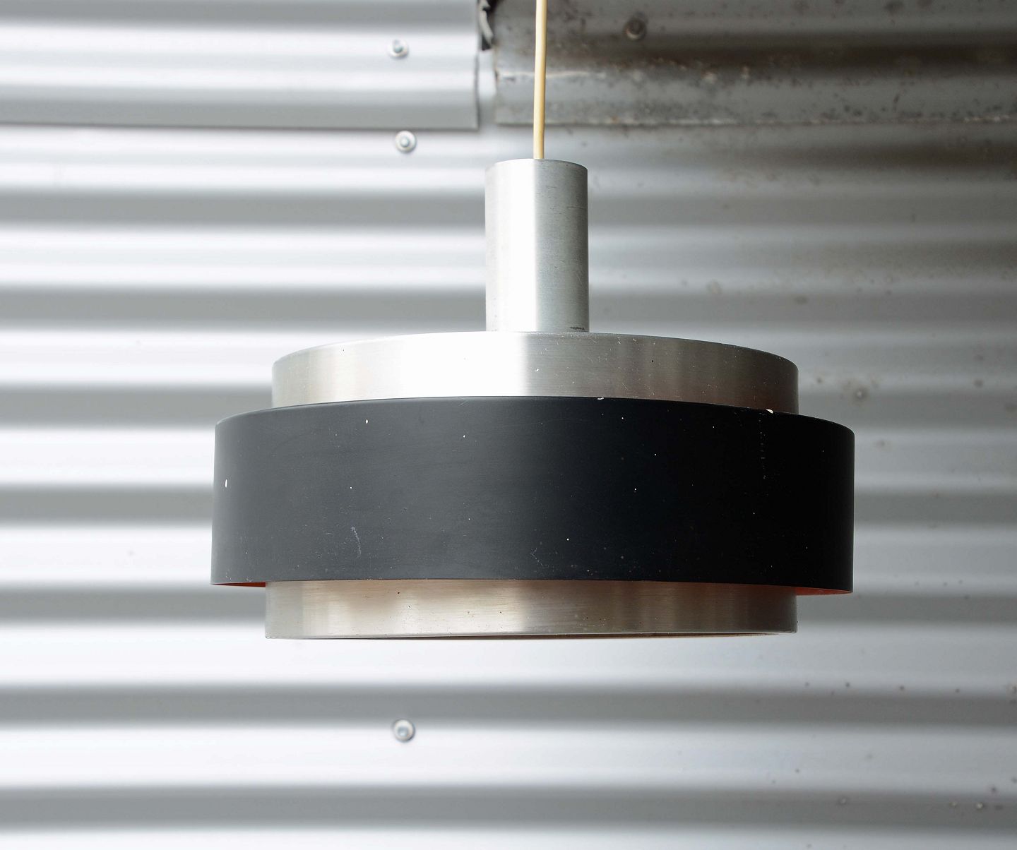 Saturn loftslampe med skærm i aluminium og sortlakeret aluminium. Flere ridser på skærmen. Enkelte mindre malerpletter.