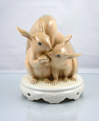 Figur af to egern (nr. 416) af Christian Thomsen for Royal Copenhagen. Perfekt stand. 1. sort.