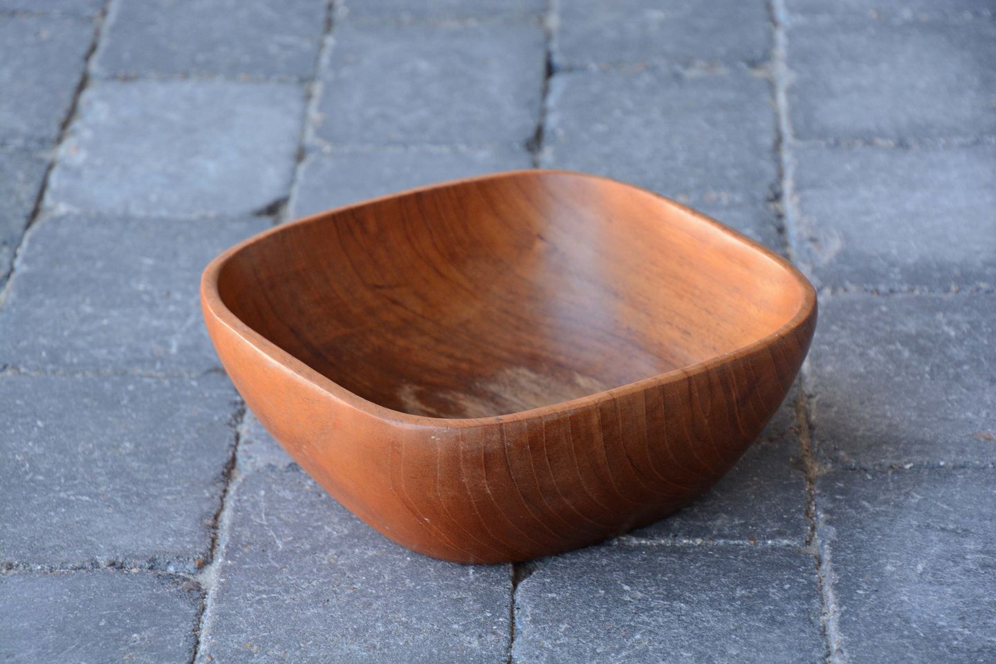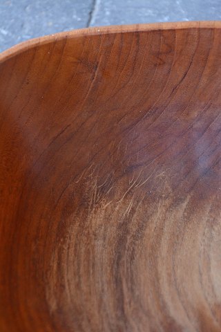 Skål udskåret af et stykke teaktræ. Pæn stand. Brugsspor - ridser i bund og på yderside.