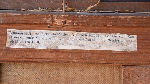 Maleri på lærred af Åge Trolle Blumensaat. Signeret "ATB 1920". Pæn stand. Enkelte ridser på rammen.