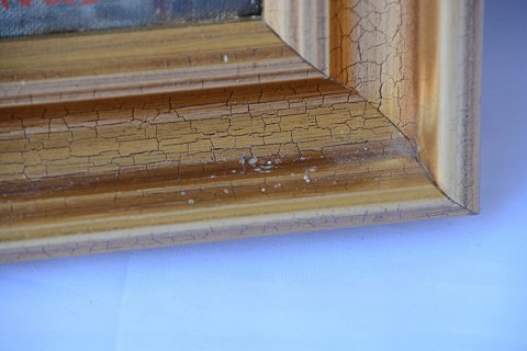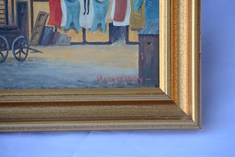 Maleri af Klingenbergs gaard på lærred af Bjarne Helverskov. Signeret. Lette brugsspor på rammen. Pæn stand.