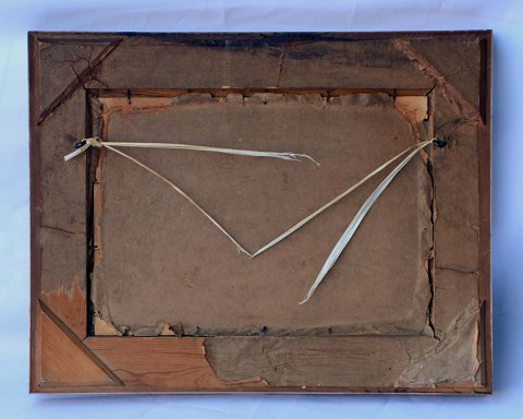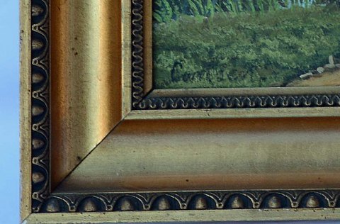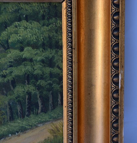 Landskabsmotiv. Maleri på plade. Signeret. Lille skade på rammen. Pæn stand.