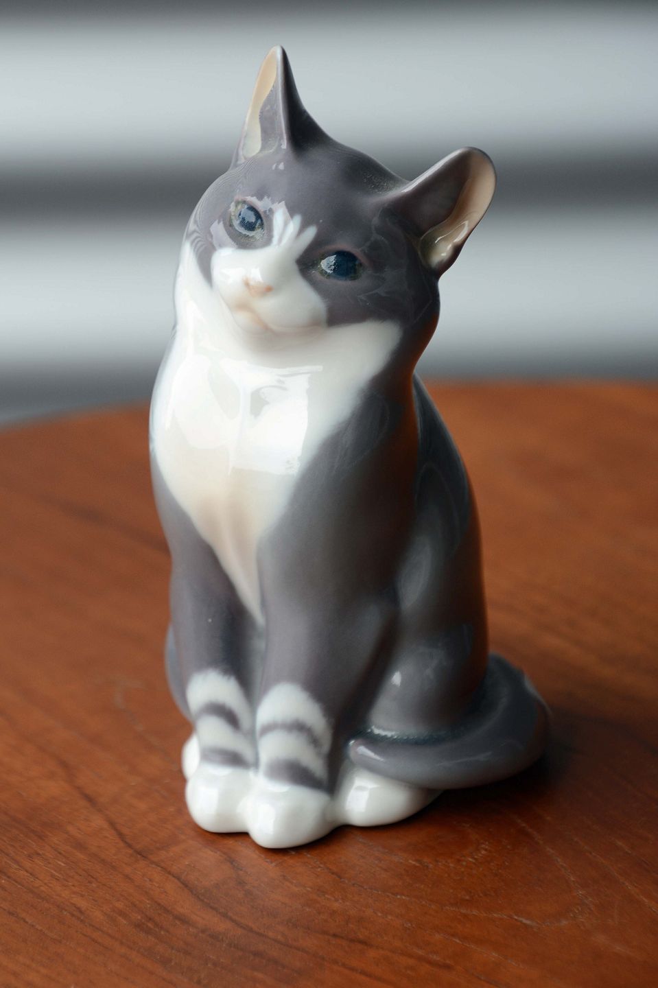 Siddende kat (nr. 115) eller 1803 fra Royal Copenhagen. 2. sort. Perfekt stand. nor 1803 er helt grå i øre, mens 115 er gul
