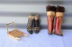 Røde marmelukker med skindpels. H. 15,5 cm.