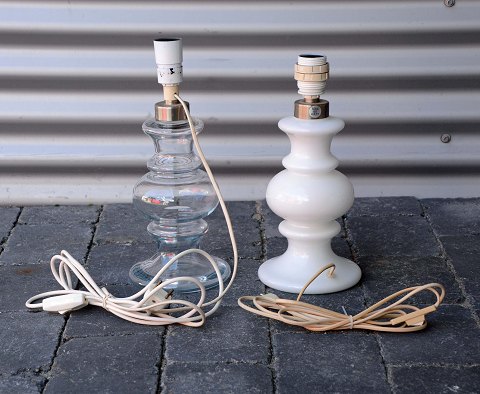 Bordlamper model "Caroline" fra Holmegaard i klar glas og opal hvid glas. Pæn stand.