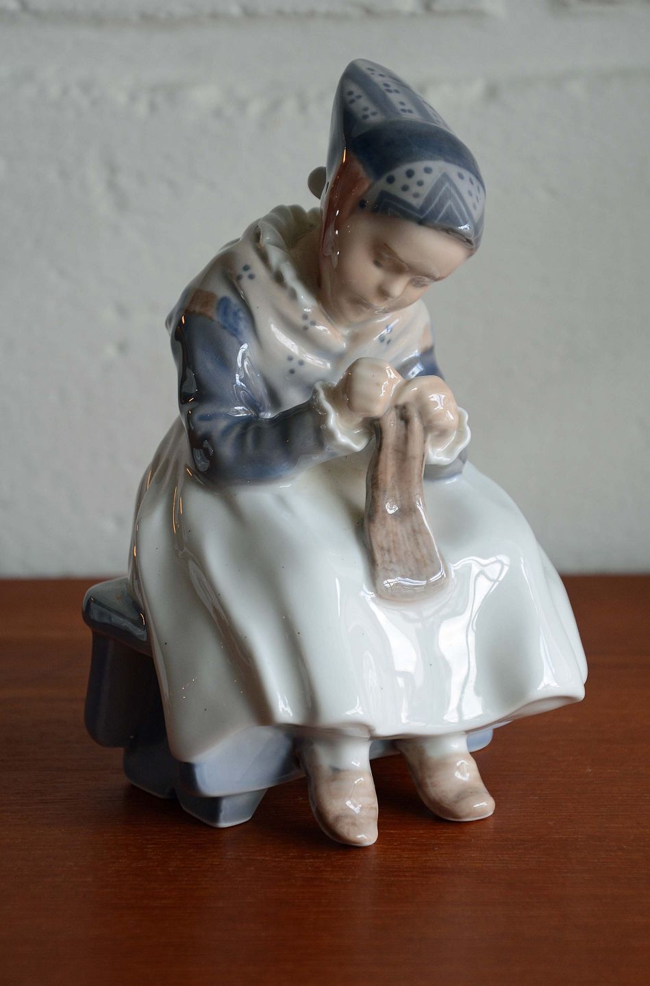 Figur af strikkende Amagerpige (nr. 1314) fra Royal Copenhagen.