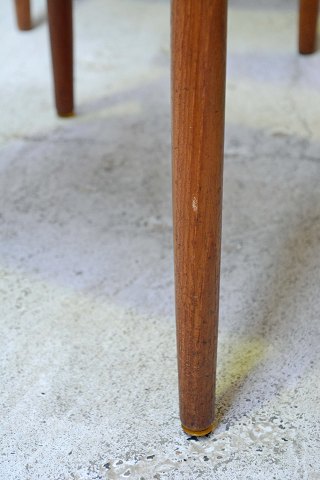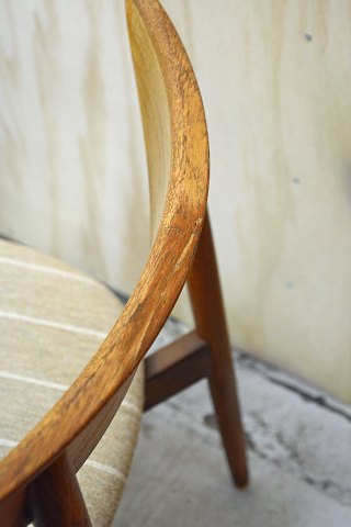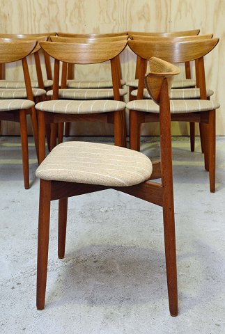 10 stk. Harry Østergaard stole i teaktræ med stofbetrukket sæde. En lille fejl ved ryglænet på en enkelt stol. Pæn stand.