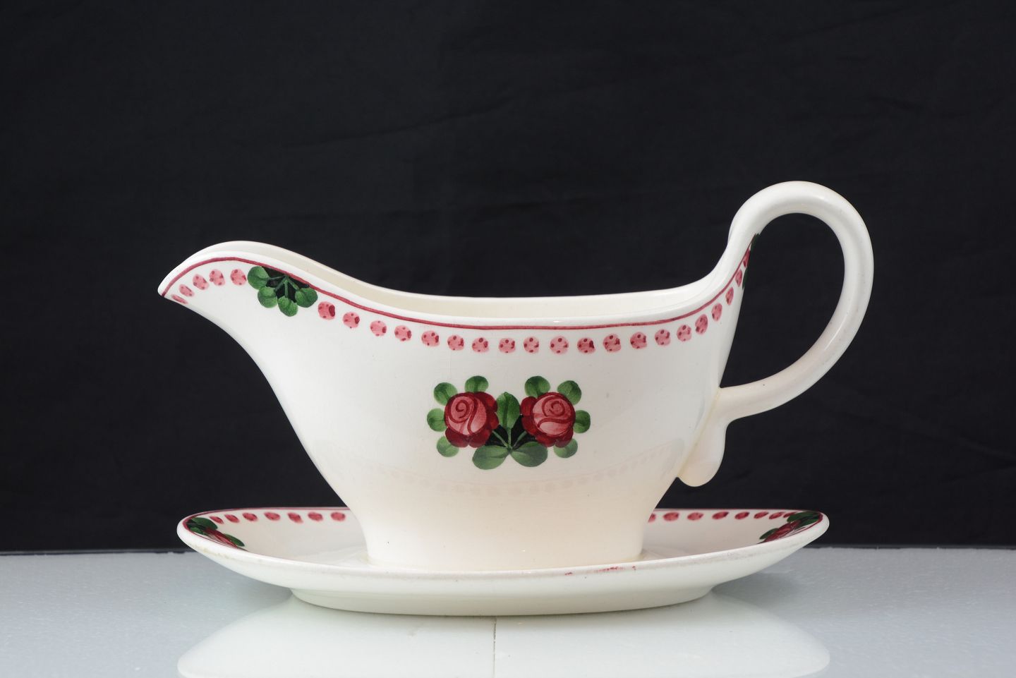Rose saucekande (nr.955/489) af Christian Joachim fra Aluminia Fajance. Fremstår indvendige brugsspor.