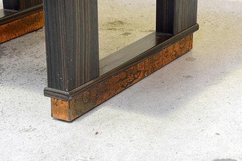 Sofabord i palisander med topplade og sokkel omsluttet i kobber med egyptiske motiver. Brugsspor - mindre hak i bordkanten samt alm. brugsspor.