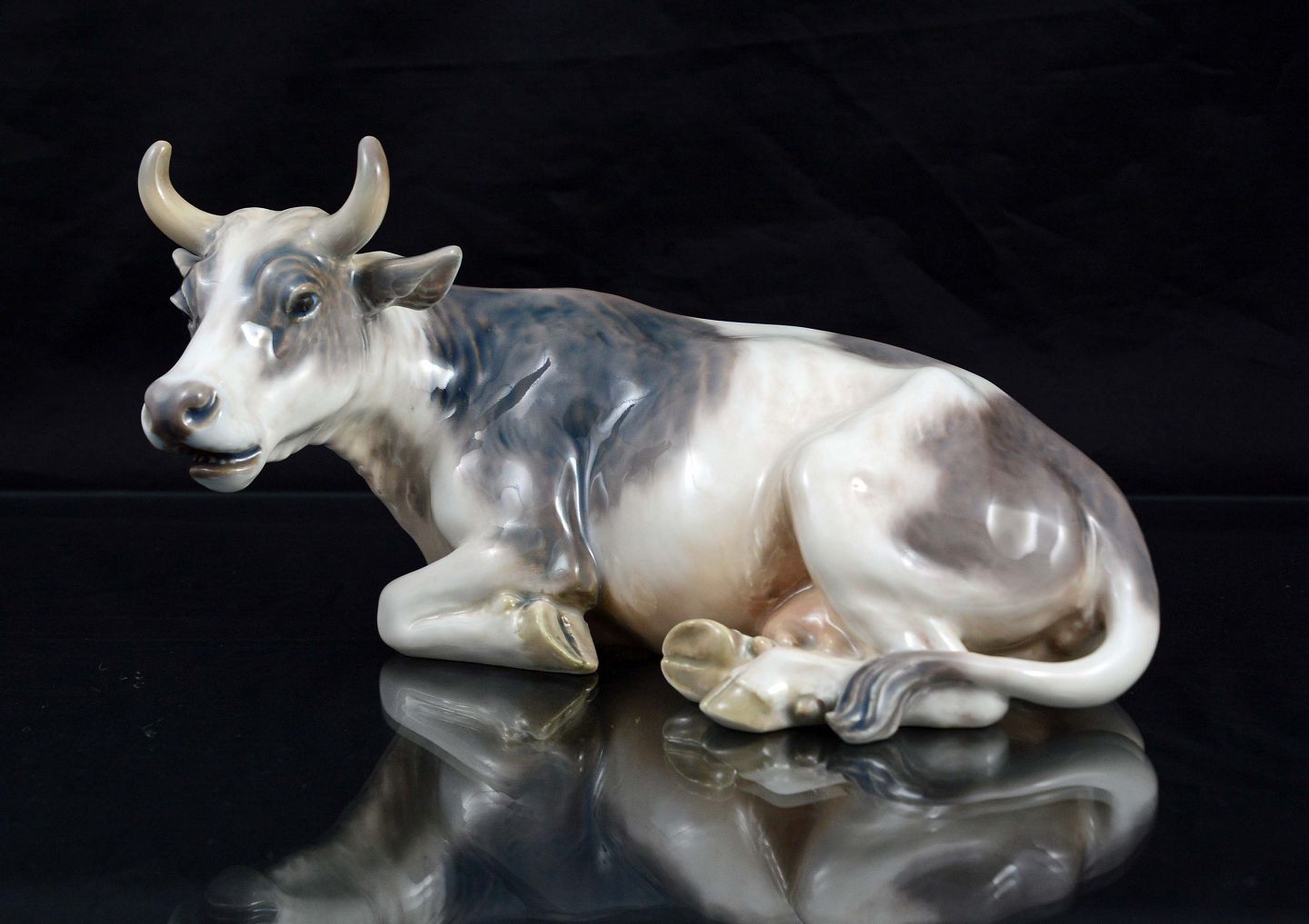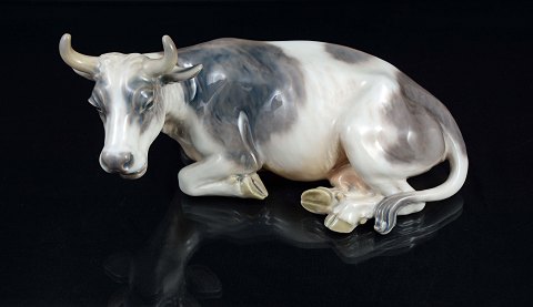 Liggende ko (nr. 1234) af Dahl Jensen. Intakt og 1. sort. Lidt ru på det ene horn.