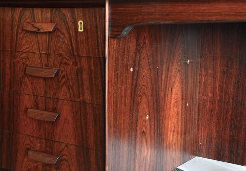 Vi køber skrivebord i palisander/eg/teak med æggeformet plade
