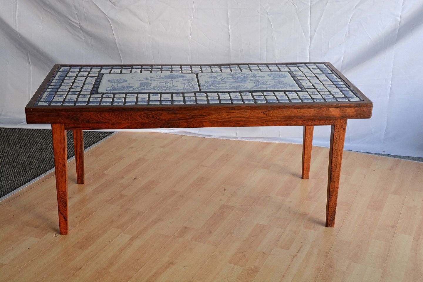 Sofabord i palisander med kakler af Bjørn Wiinblad . Signeret. Intakt med enkelte overfladiske brugsspor på træet.