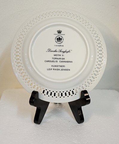 Tornirisk vægplatte (nr. 11416/616). Motiv nr. 3 i serien ”Danske sangfugle” af Leif Ragn Jensen for Bing og Grøndahl. Intakt. 1. sort.