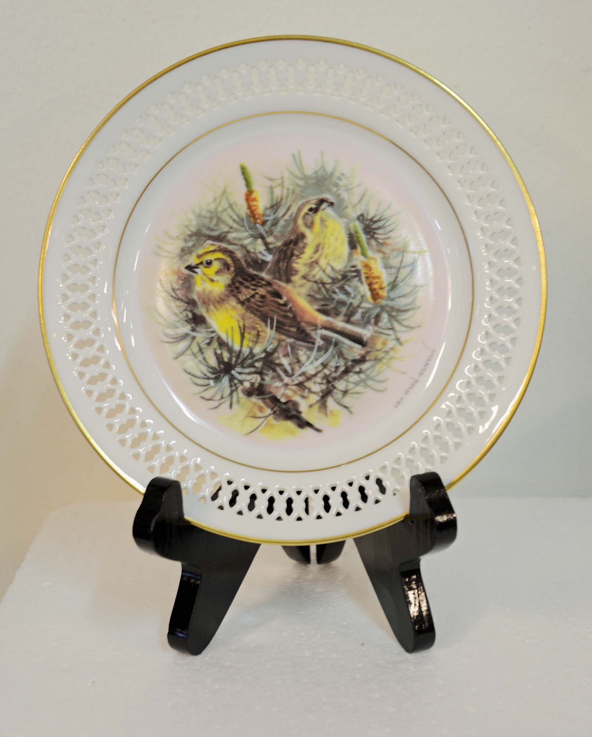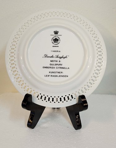 Gulspurv vægplatte (nr. 11420/616). Motiv nr. 8 i serien ”Danske sangfugle” af Leif Ragn Jensen for Bing og Grøndahl. Intakt. 1. sort.