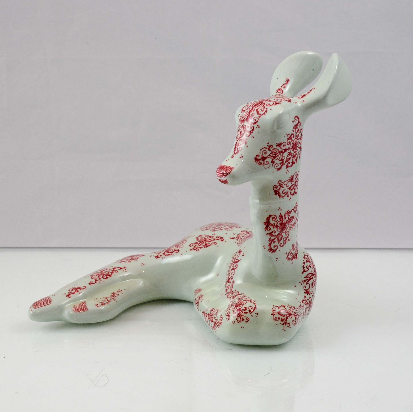Dådyr figur med rød aftegning (decor nr. 2021-420) af Arne Bang for Nymølle, Denmark. Intakt.