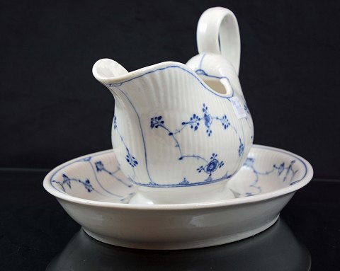Kongeligt musselmalet riflet saucekande med underfad. Fremstillet år 1870-1890. Intakt.