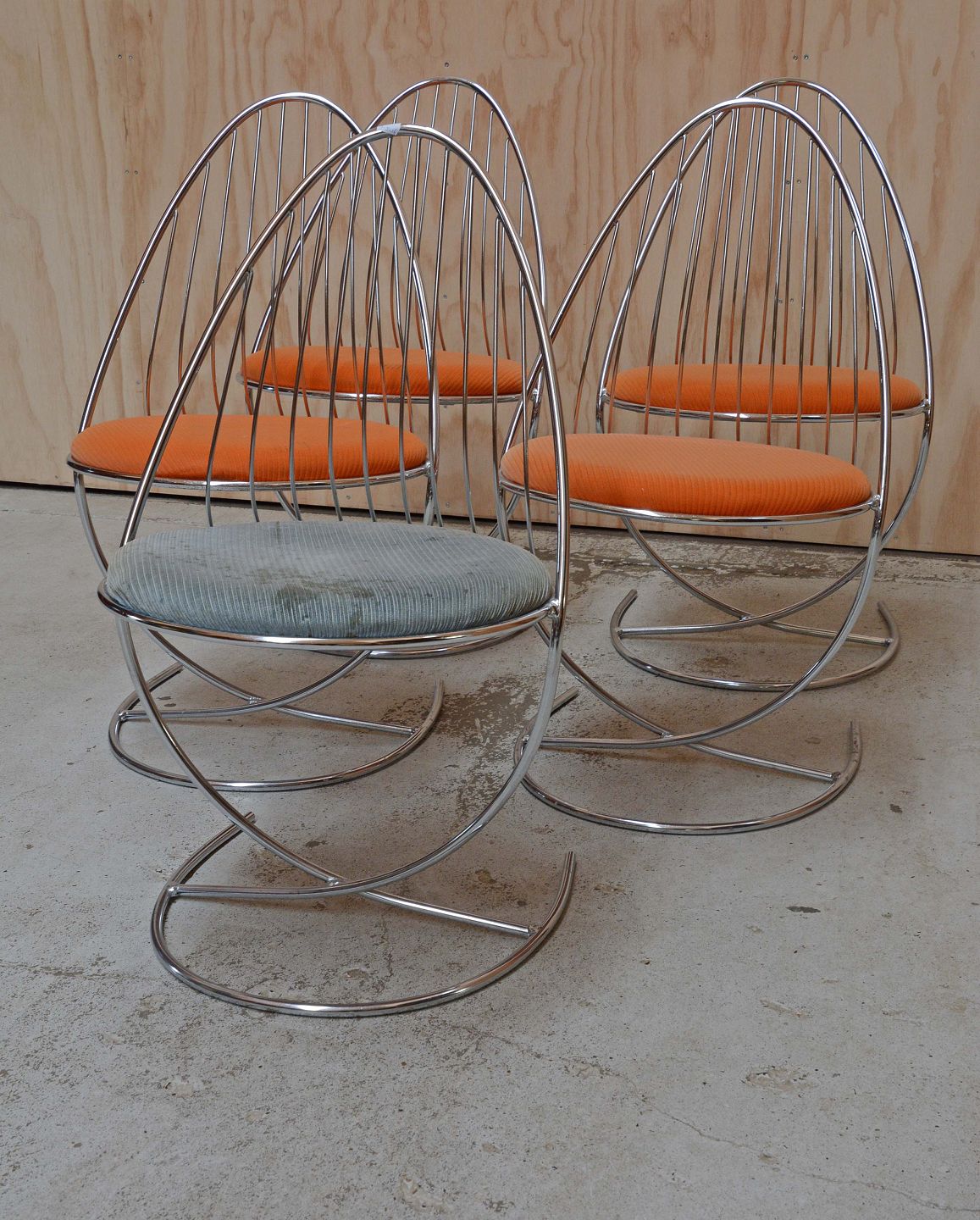 Et sæt på fem svenske Dahlens Dalum stole i chrome/krom. Tidligere solgt i Bloomingdales i 1960érne, og modellen er også anvendt i den britiske tv-serie "Doctor Who".