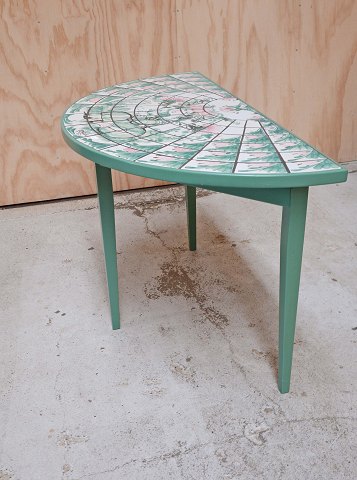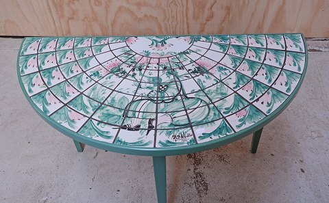 Grønmalet bord med malede kakler med kvindemotiv af Bjørn Wiinblad. Signeret "Bjørn Wiinblad ´74". Fremstår med minimale brugsspor.