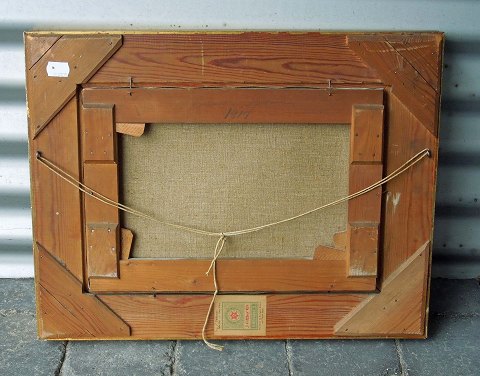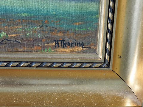 Olie på lærred. Naturmaleri i gylden ramme med motiv af træer af Signeret H. Thorine er pseudonym for Kaj Drews