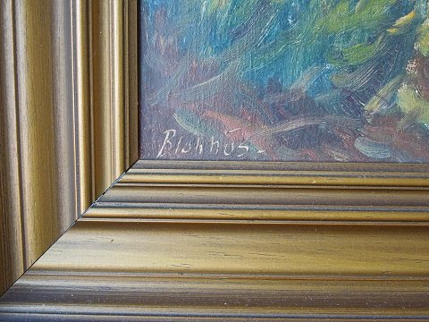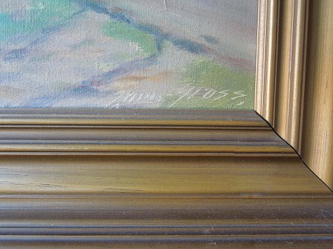 Olie på lærred. Maleri med motiv fra Blokhus af Einar Gross (1895-1960). Fremstår med minimale brugsspor på rammen.