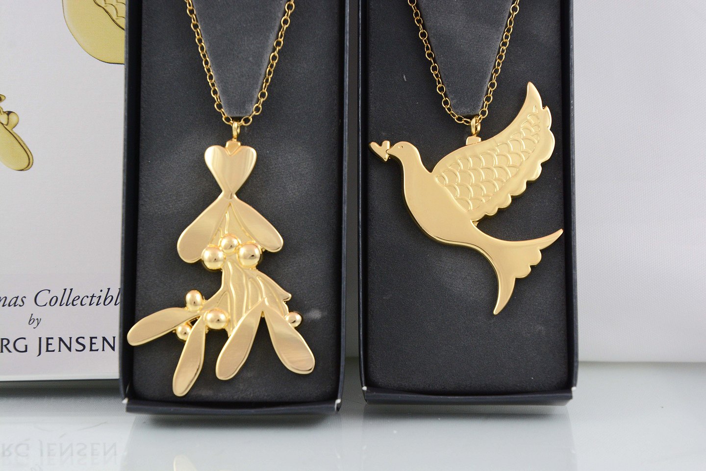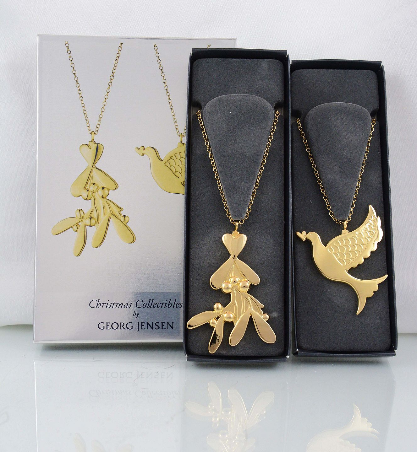 Georg Jensen julepynt. Ornamenter udført i zink alloy belagt med 24 karats guld. Christmas Collectibles designet af Karen Bit Vejle 2014.