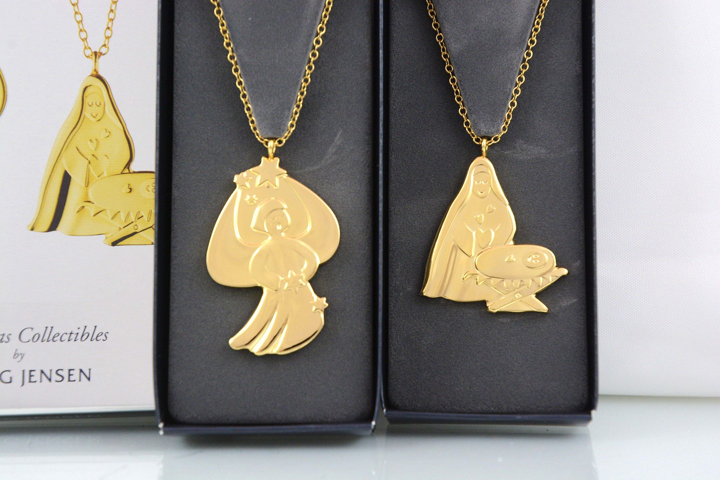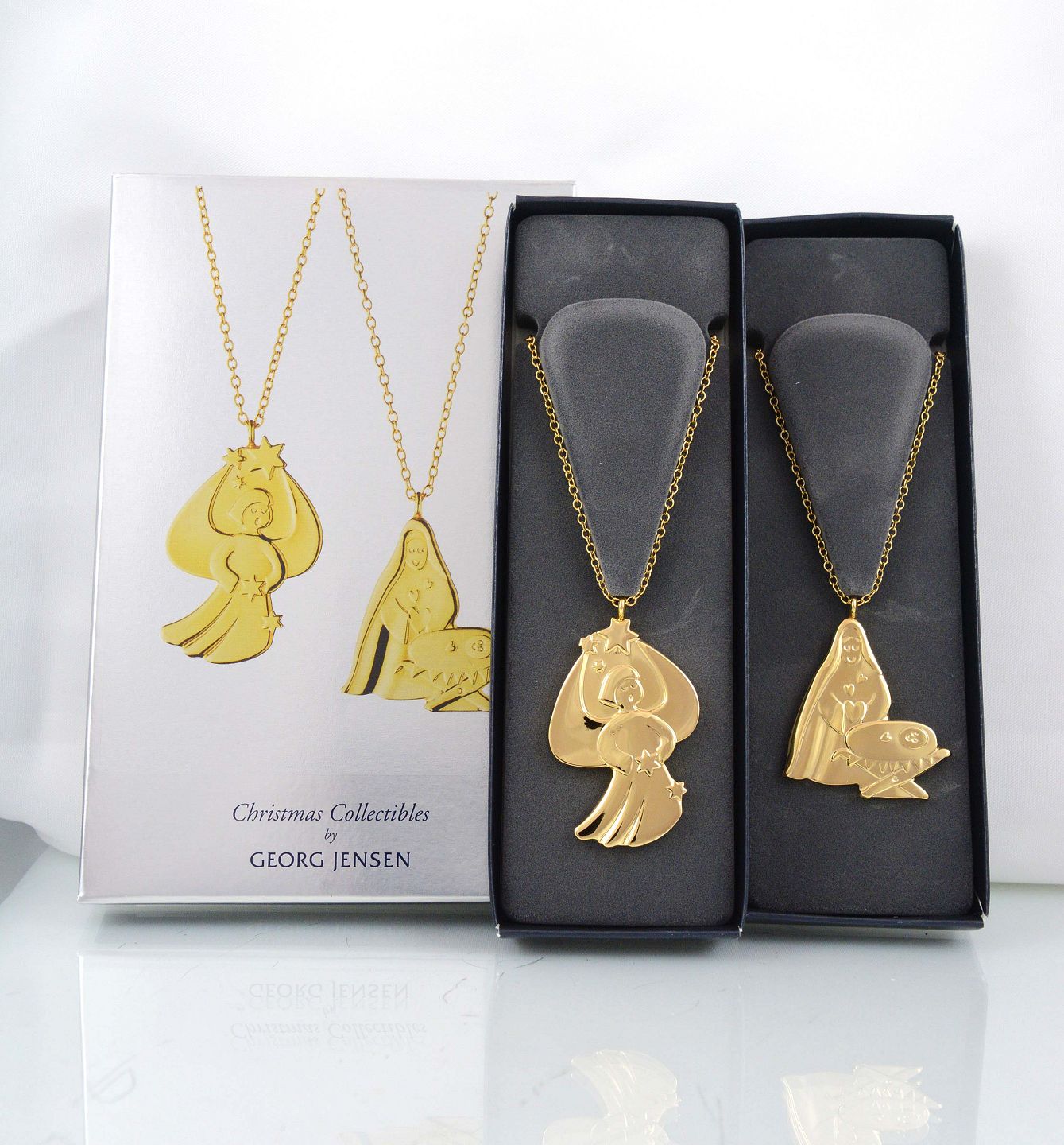 Georg Jensen julepynt. Ornamenterne er udført i messing forgyldt med 24 karats guld. Christmas Collectibles designet af Rebecca Uth 2012