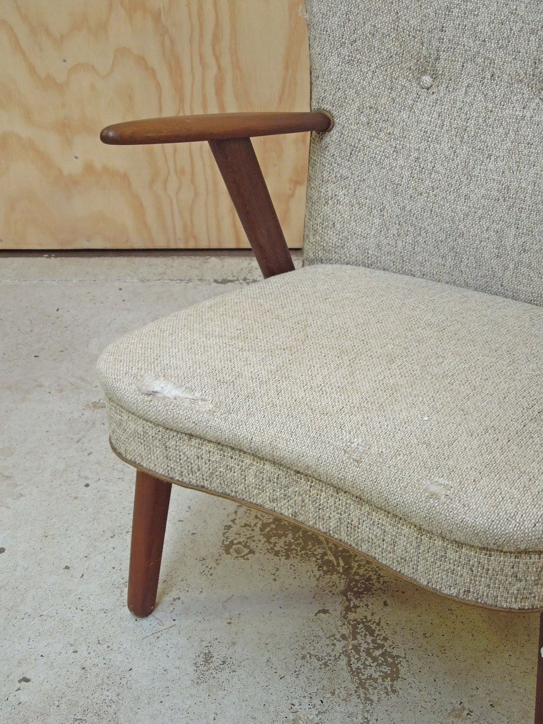 Polstret lænestol i teaktræ, arkiv foto, vi har andre med anden polstring.