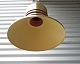 Loftslampe i messingfarvet med hvidlakeret underside og en brændt orange farve i lampens top. Fremstår med mindre brugsspor og trænger til rengøring.