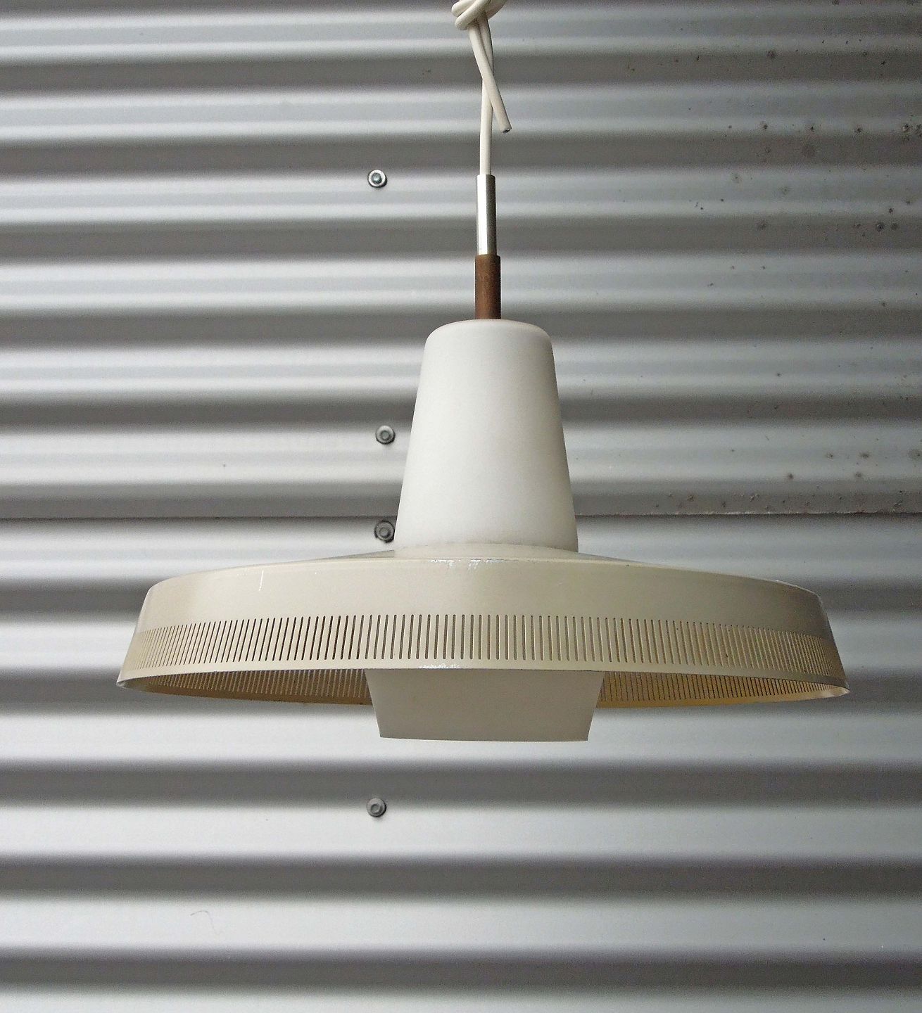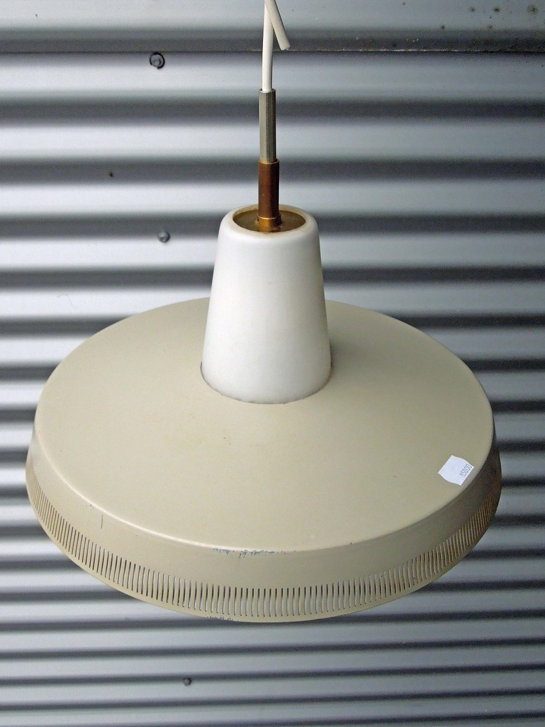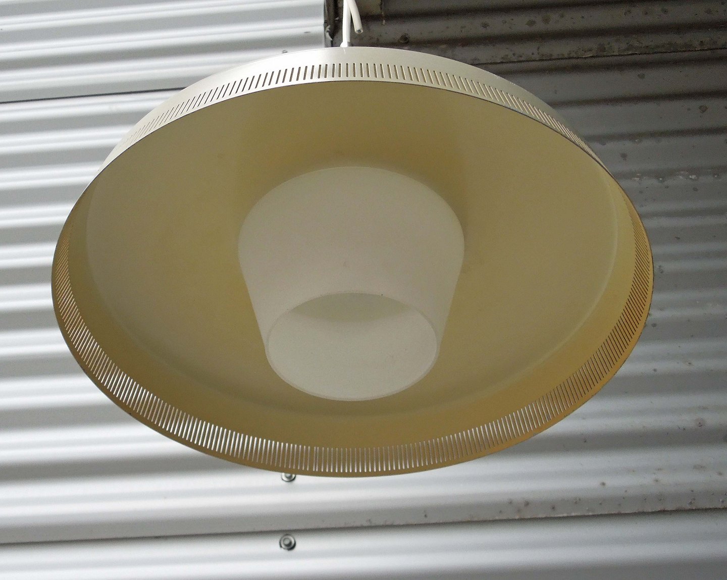 Loftslampe i hvidlakeret metal, med glas kuppel.