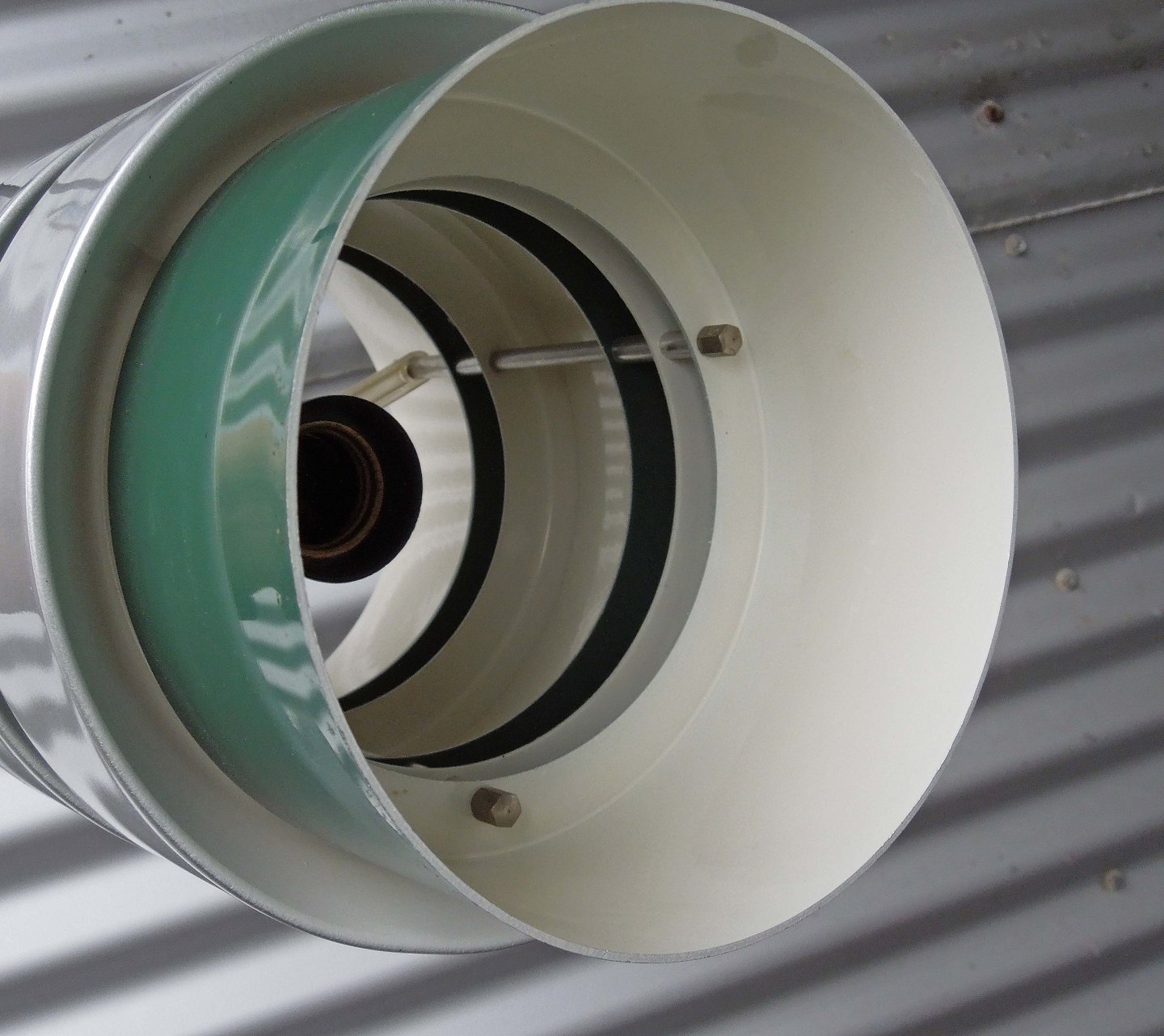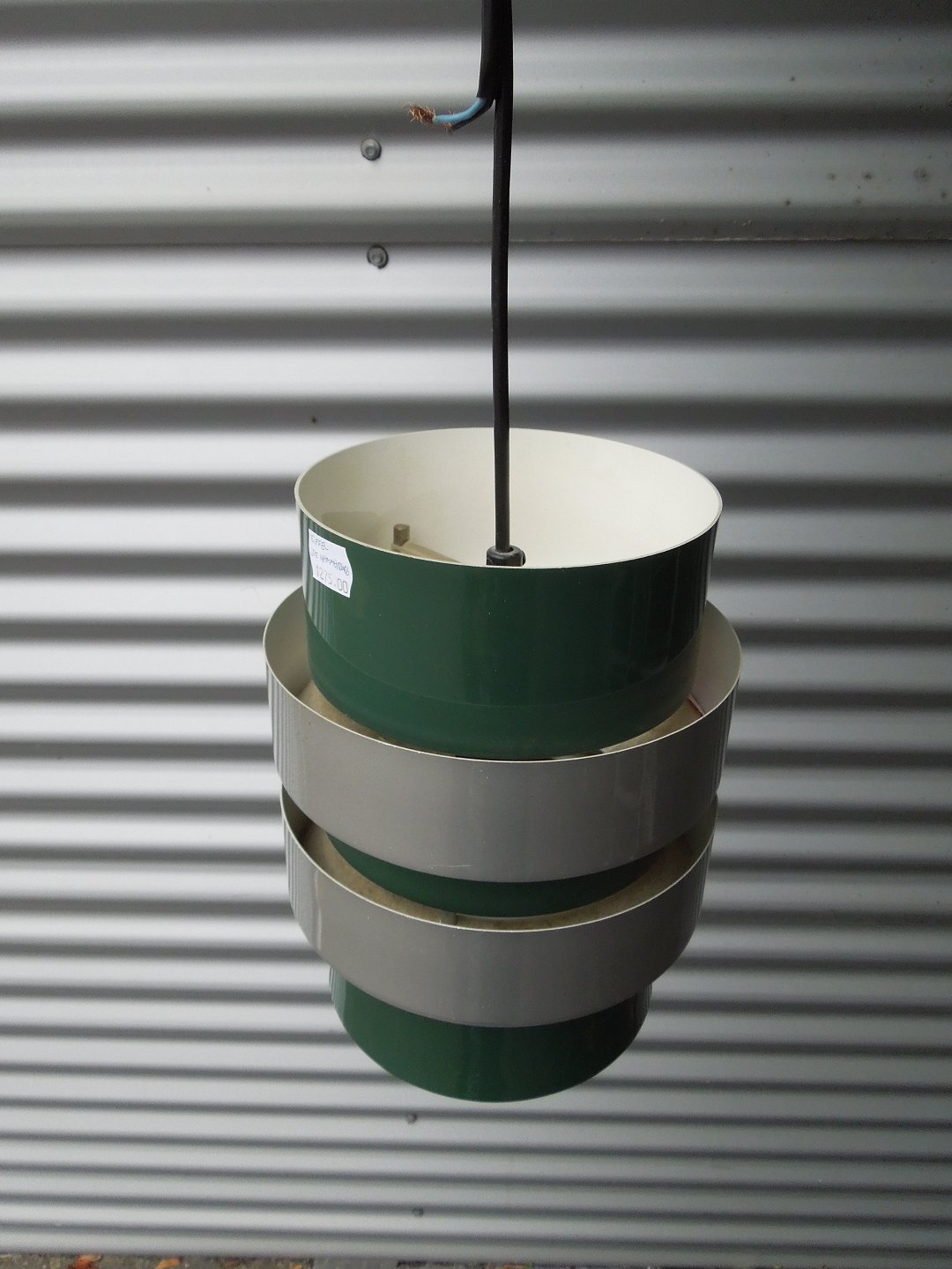 Eiffel pendel i grøn og grå farver designet af Jo Hammerborg. Fremstår med brugsspor - ridser og minimal bule i skærm.