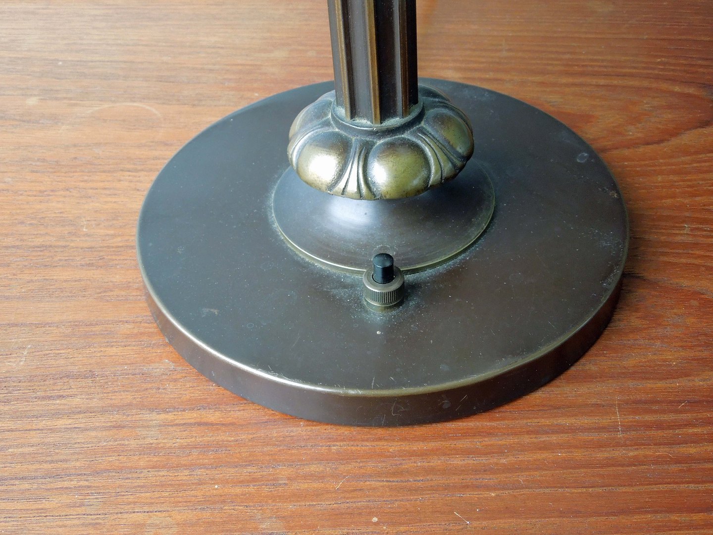 Bordlampe med bronzefod og Le Klint skærm
