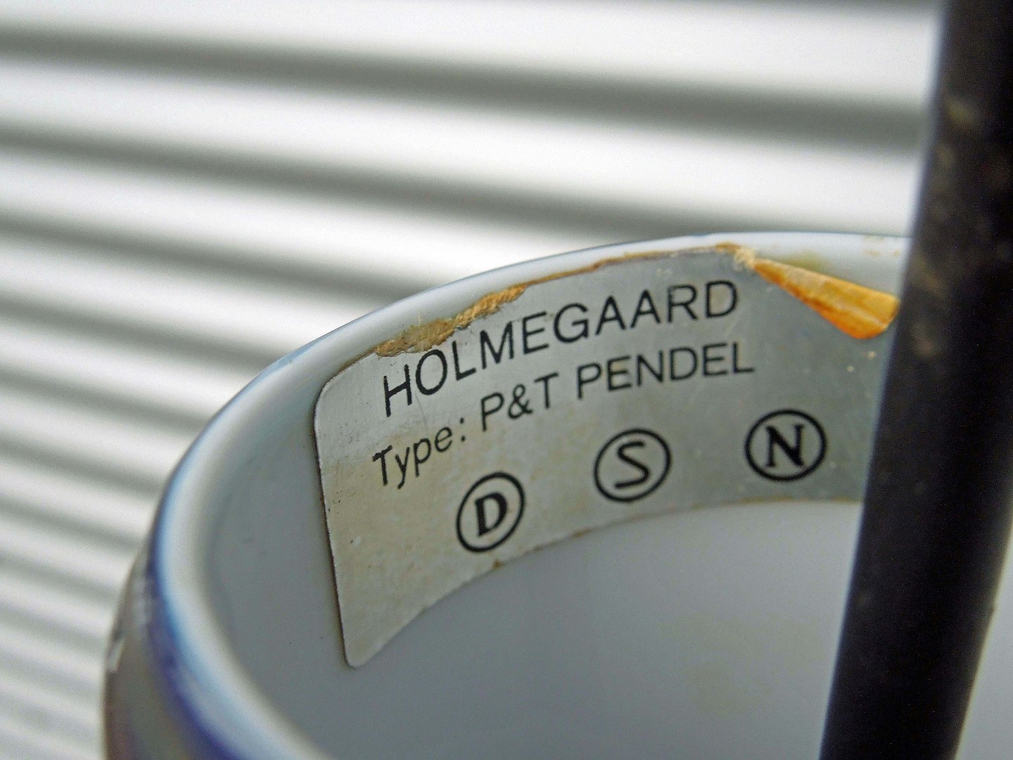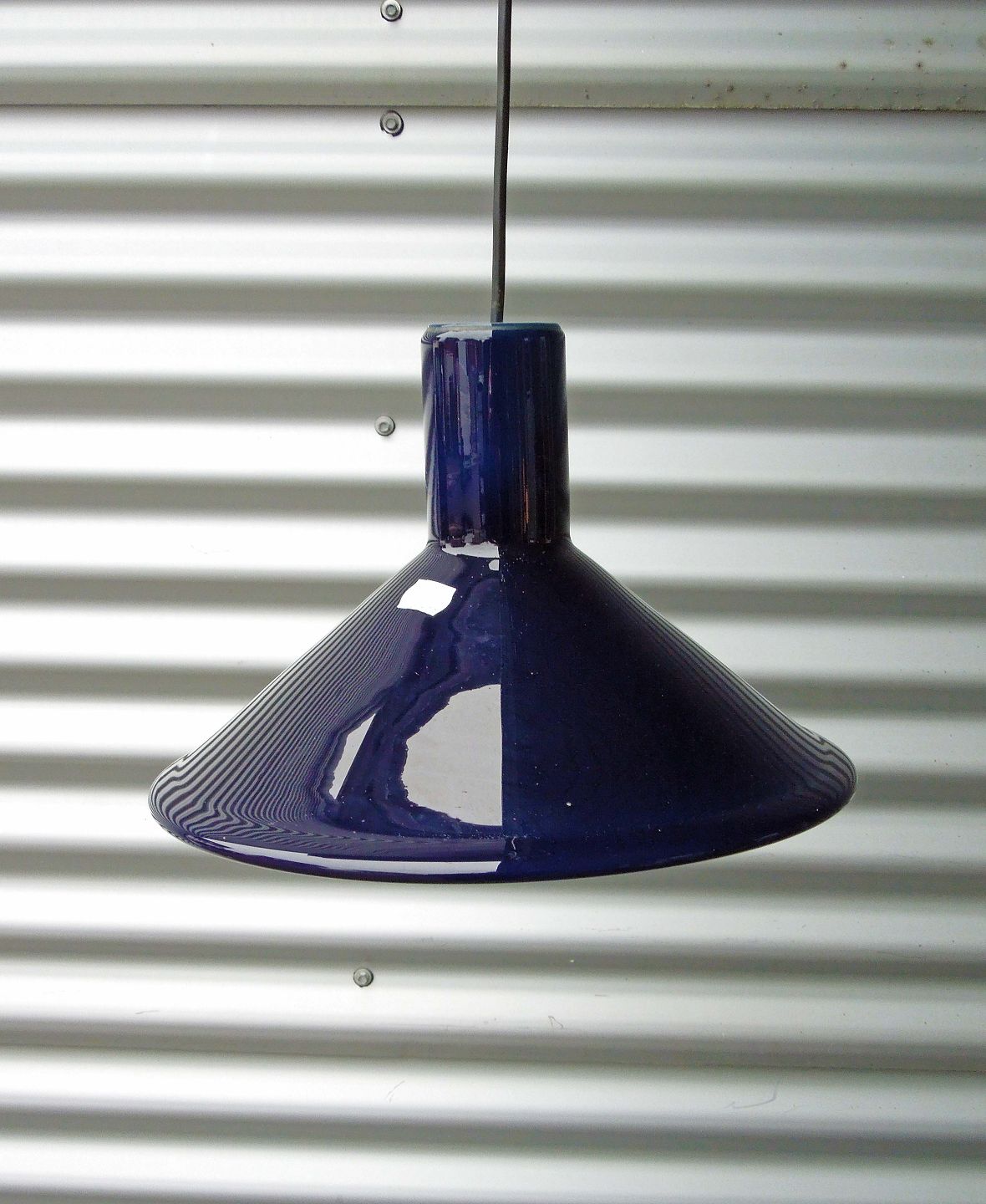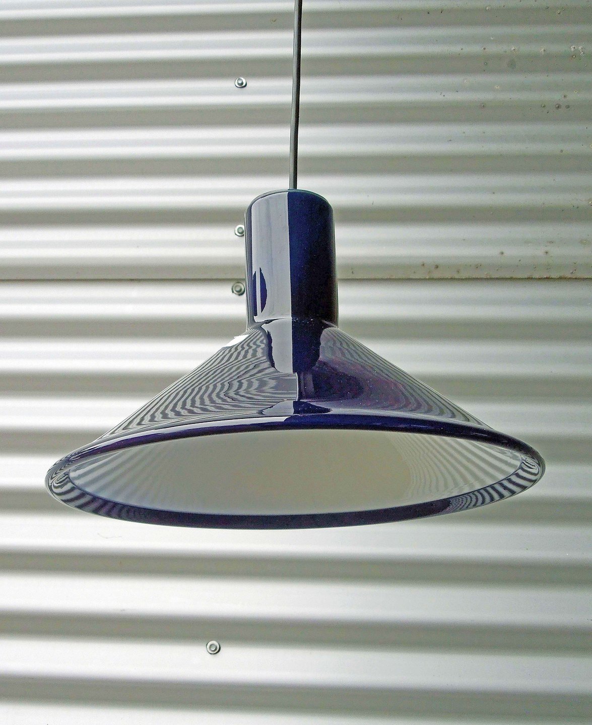 Holmegaard P&T pendel med mørkeblåt overfangsglas.