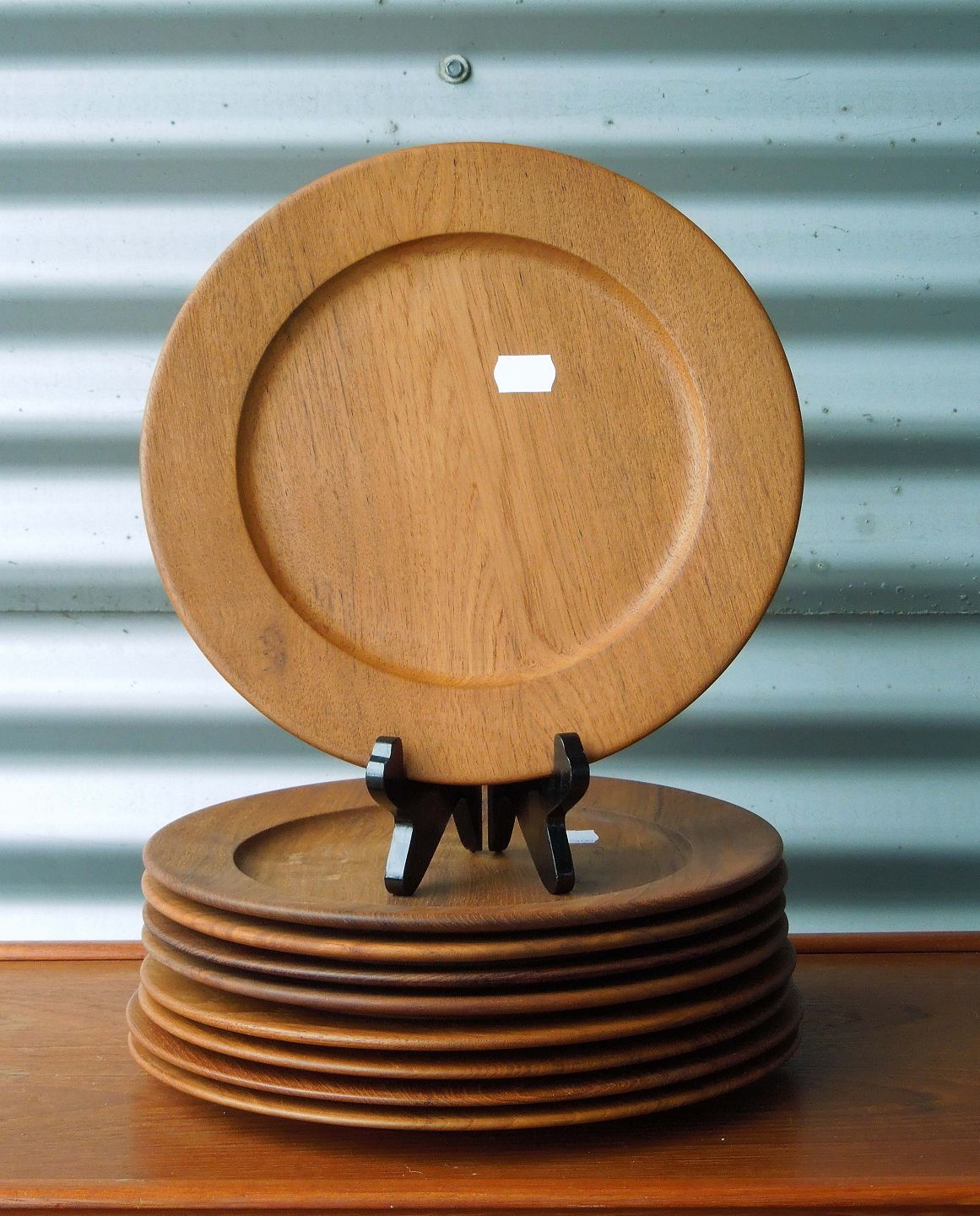Dæktallerkener i teaktræ designet af ESA, Danmark og Wiggers, Denmark. Fremstår med overfladiske brugsspor - mindre ridser efter brug.