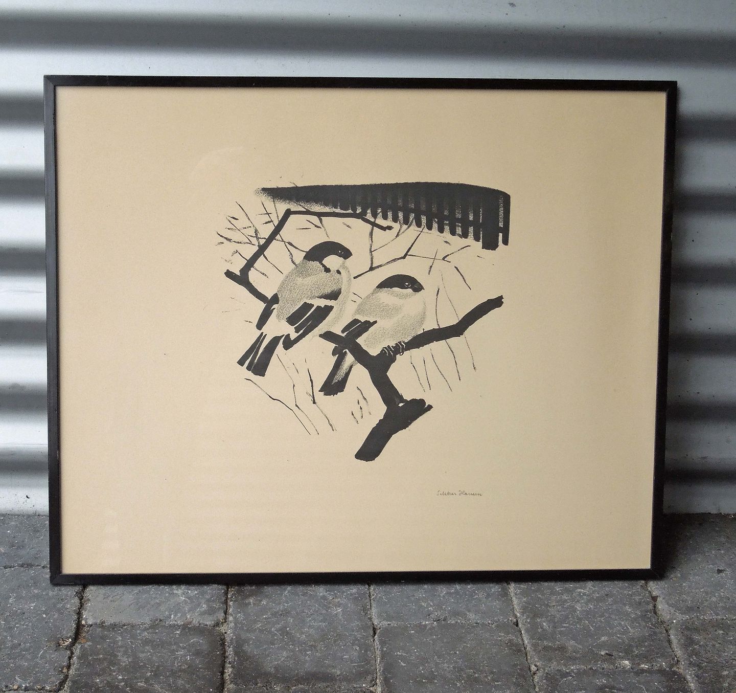 Tryk af Sikker Hansen med motiv af to mejser på gren