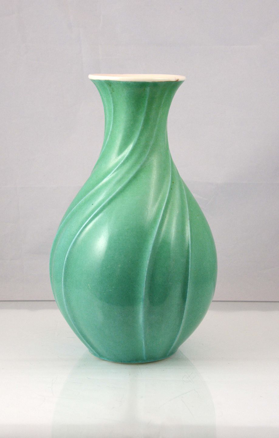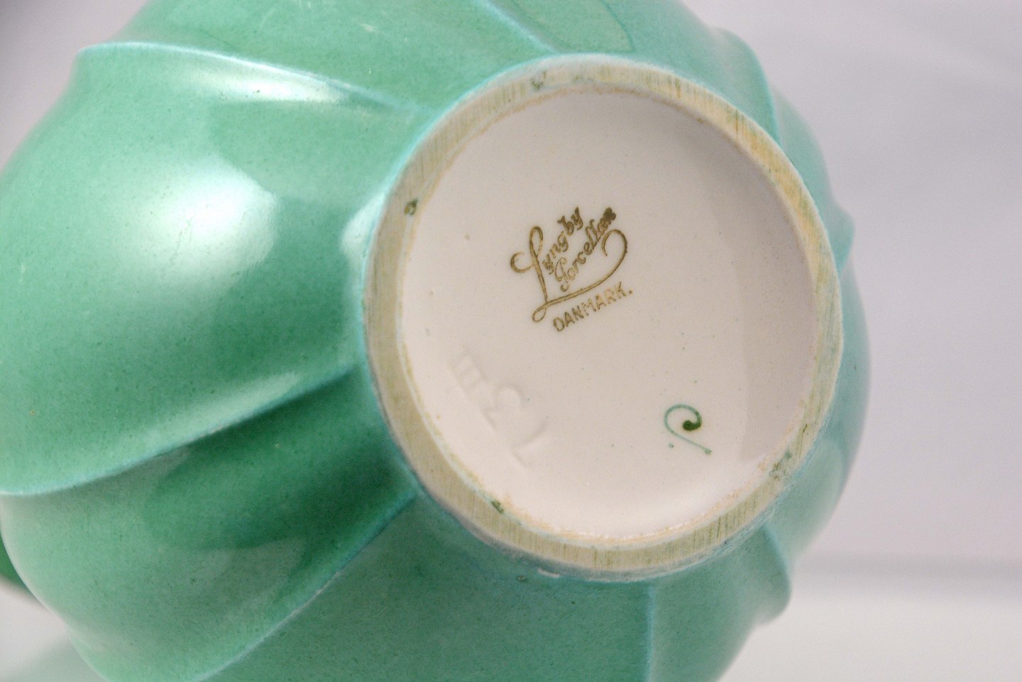 Grøn Lyngby porcelæns vase, Svejfet med guldkant