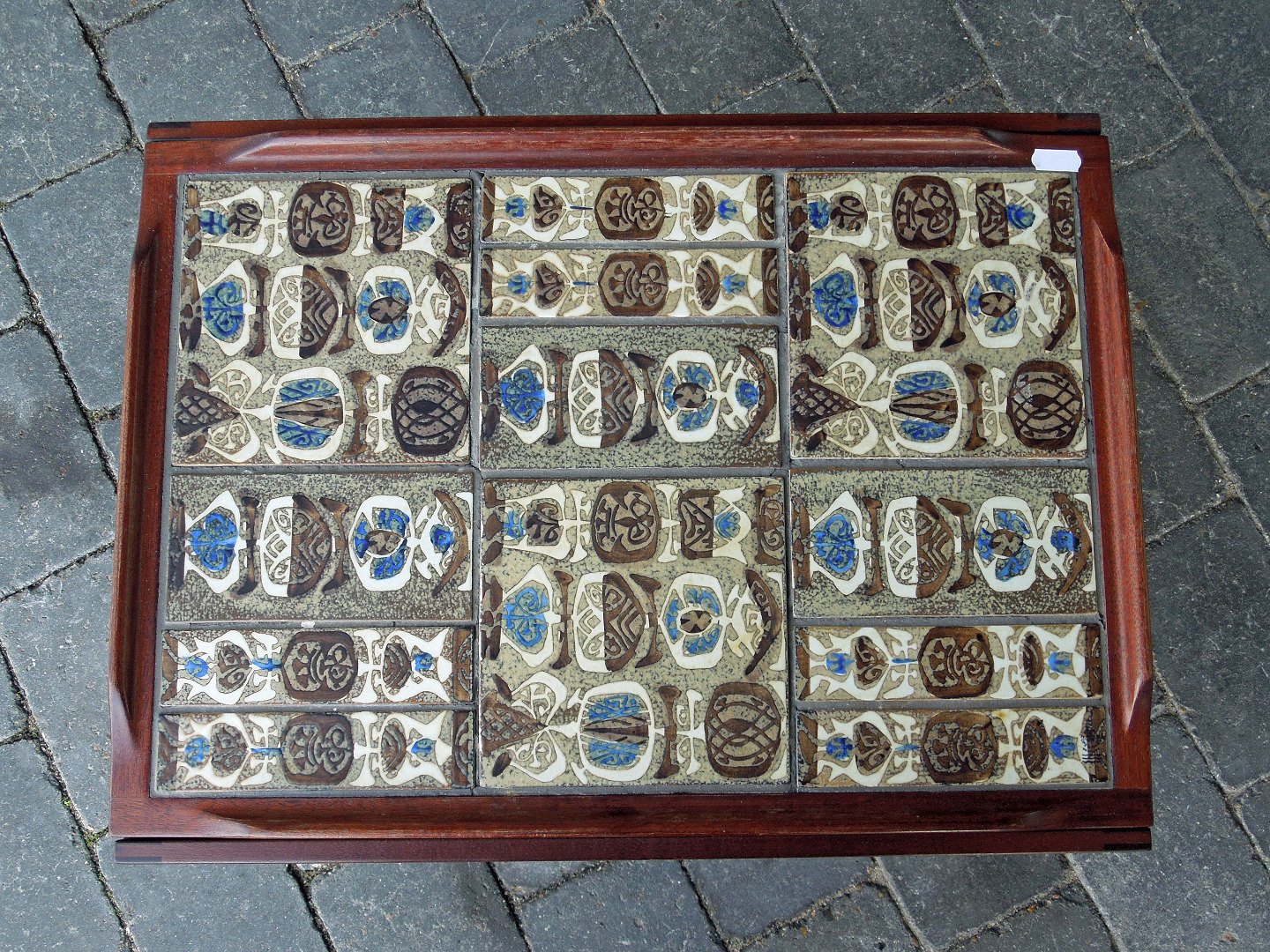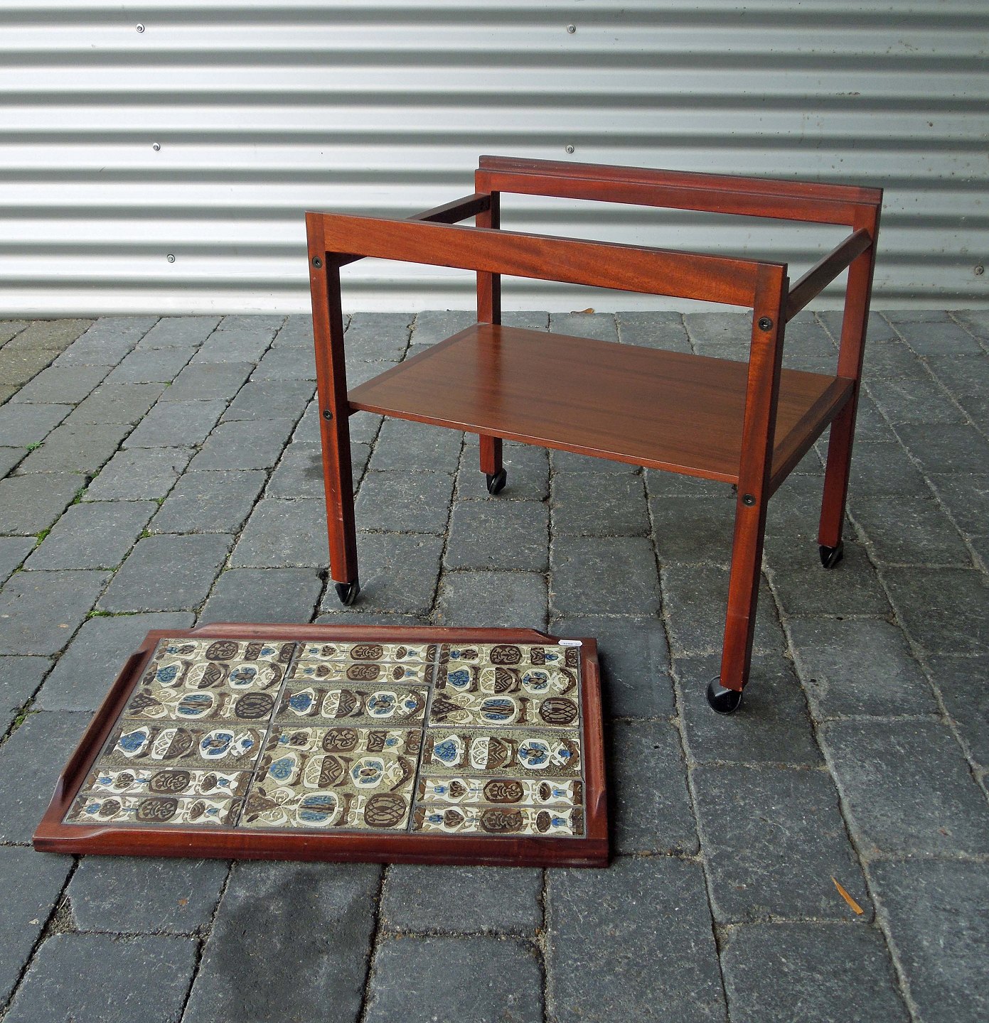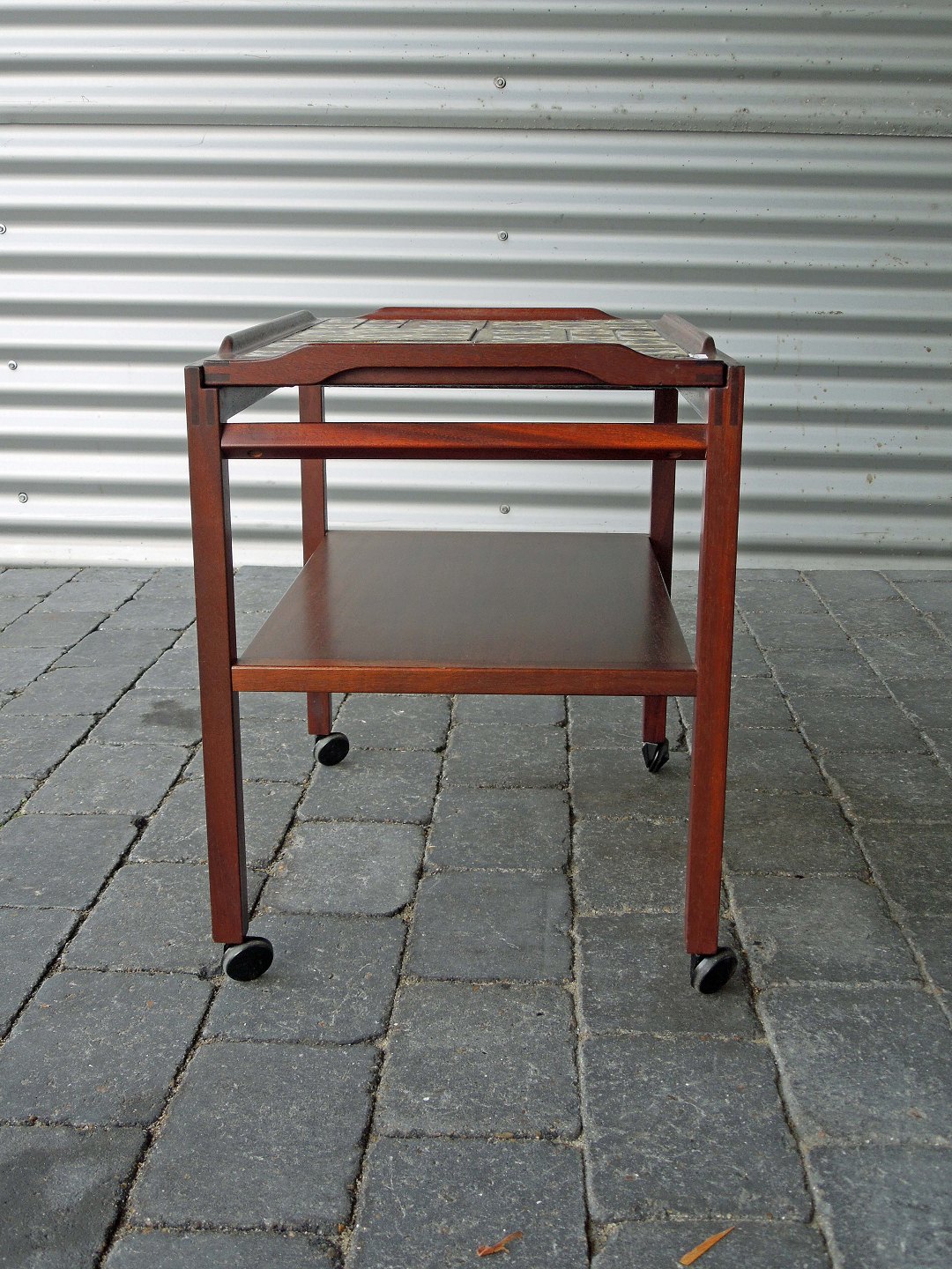 Serveringsvogn i palisander, med kakler fra Den Kongelige porcelænsfabrik.