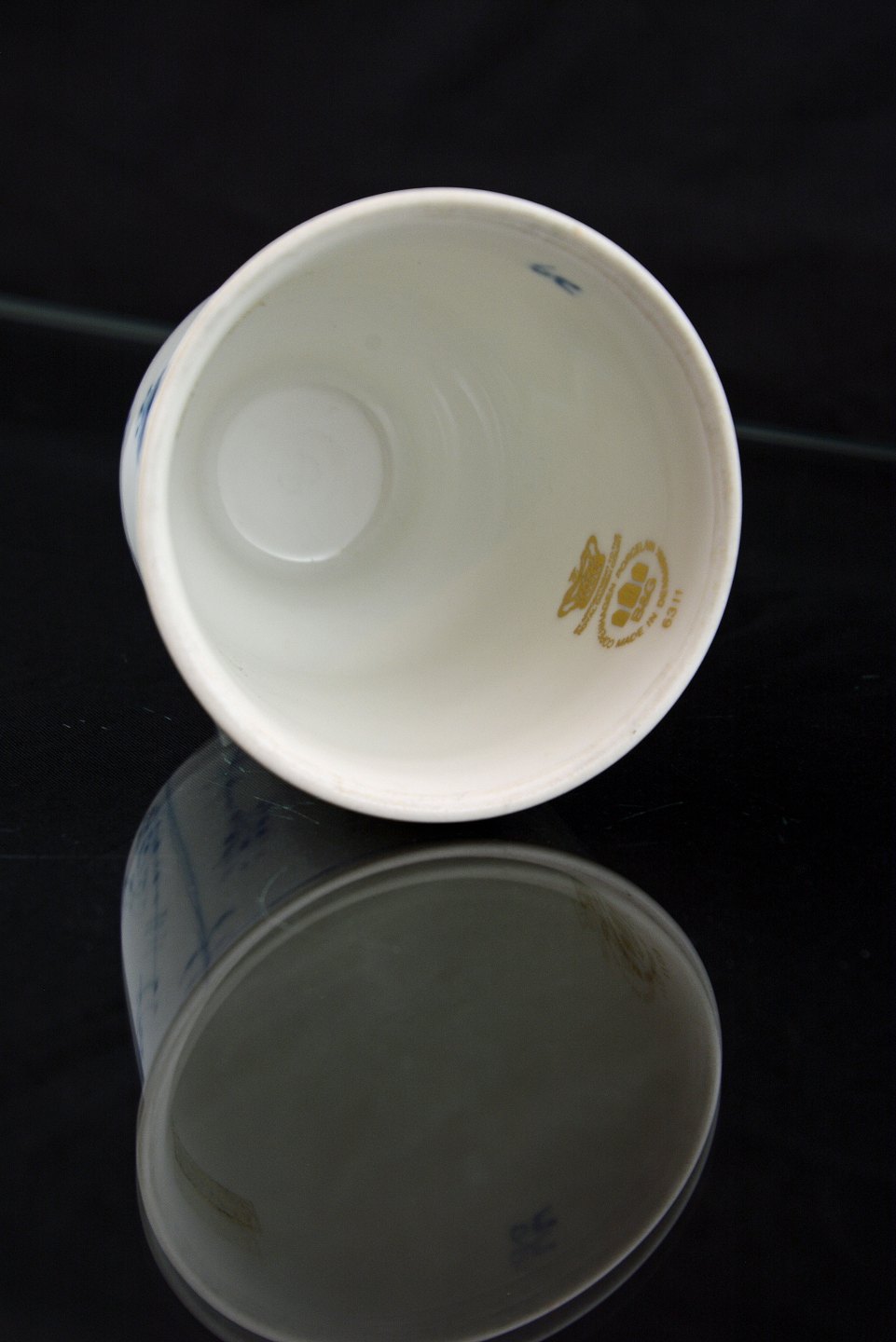 Blåmalet bord klokke (nr. 6311) fra Bing og Grøndahl, Denmark.