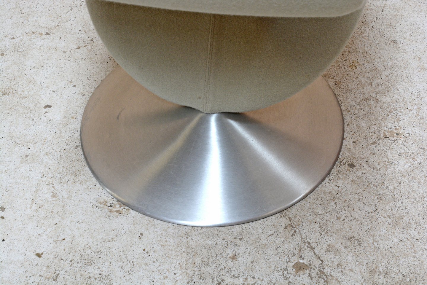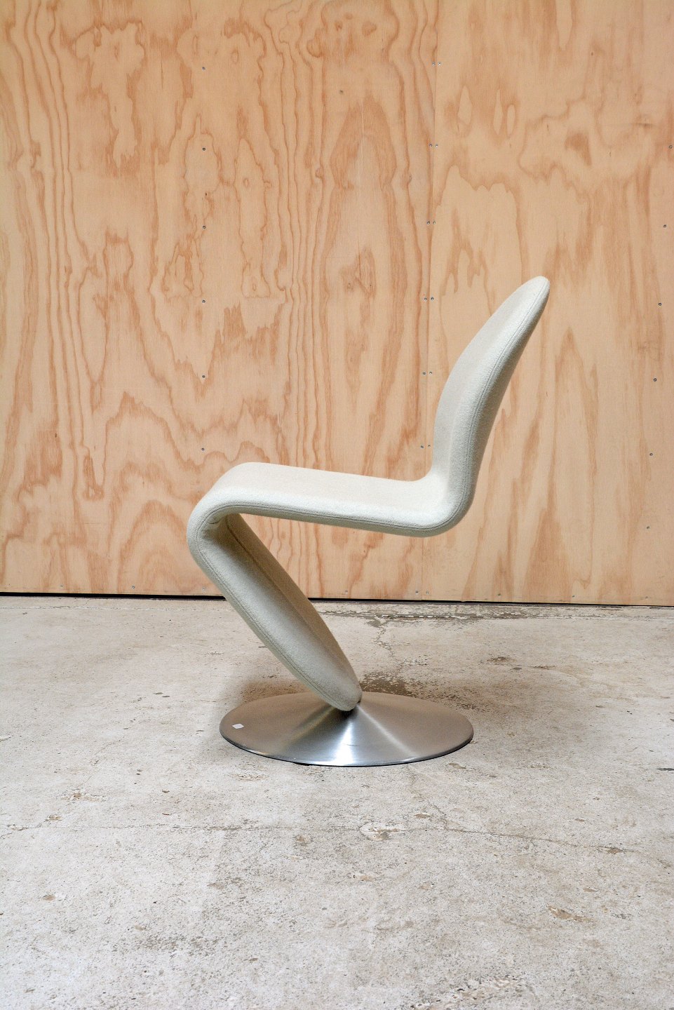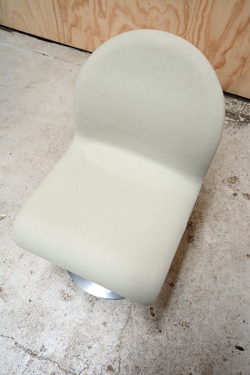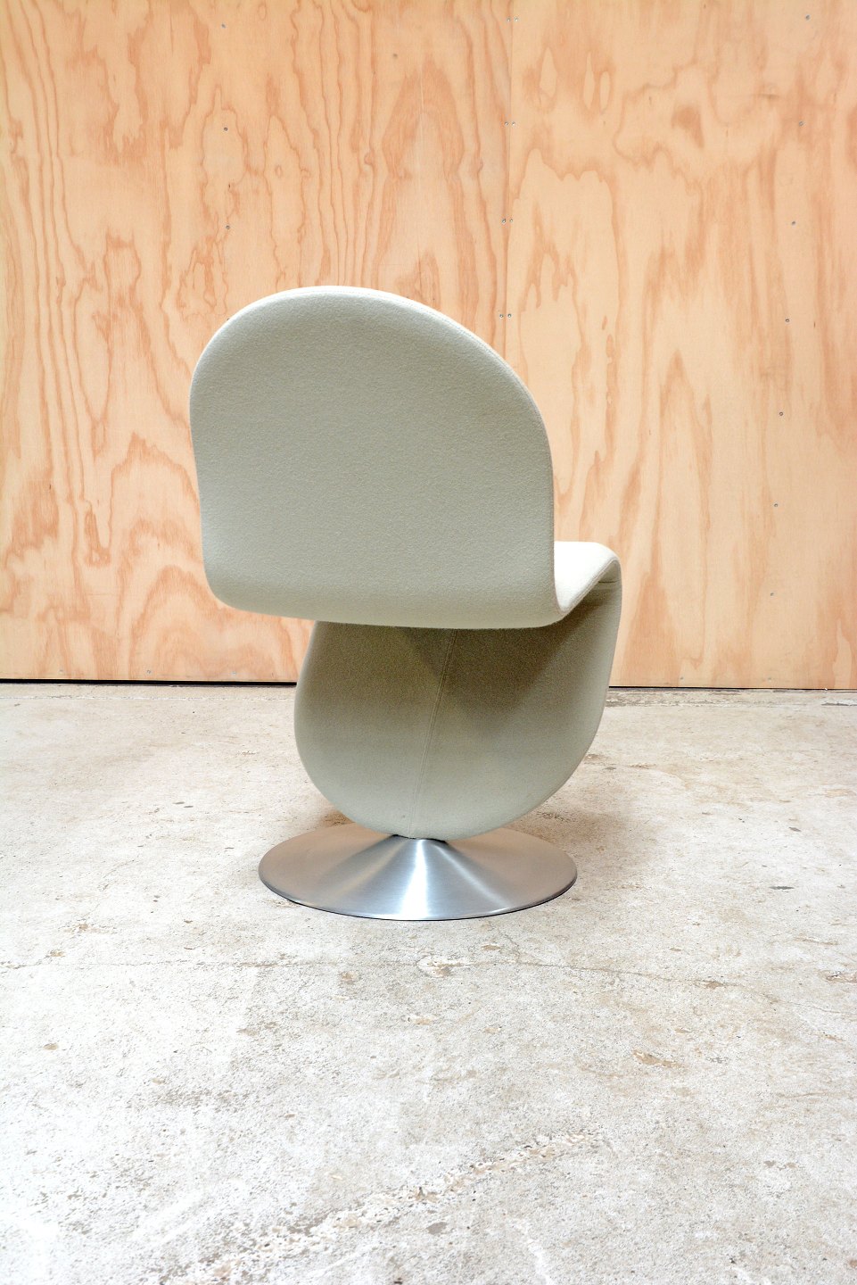1-2-3 loungestol af Verner Panton for Fritz Hansen. Modellen er fremstillet i 1960érne og er betrukket med musegrå uldbetræk. Stolen har en rund fod i forkromet stål. I flot stand.