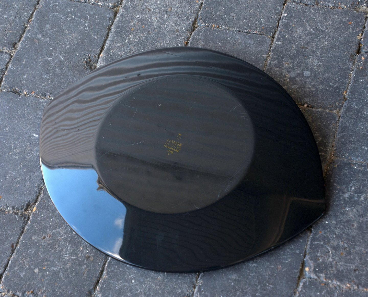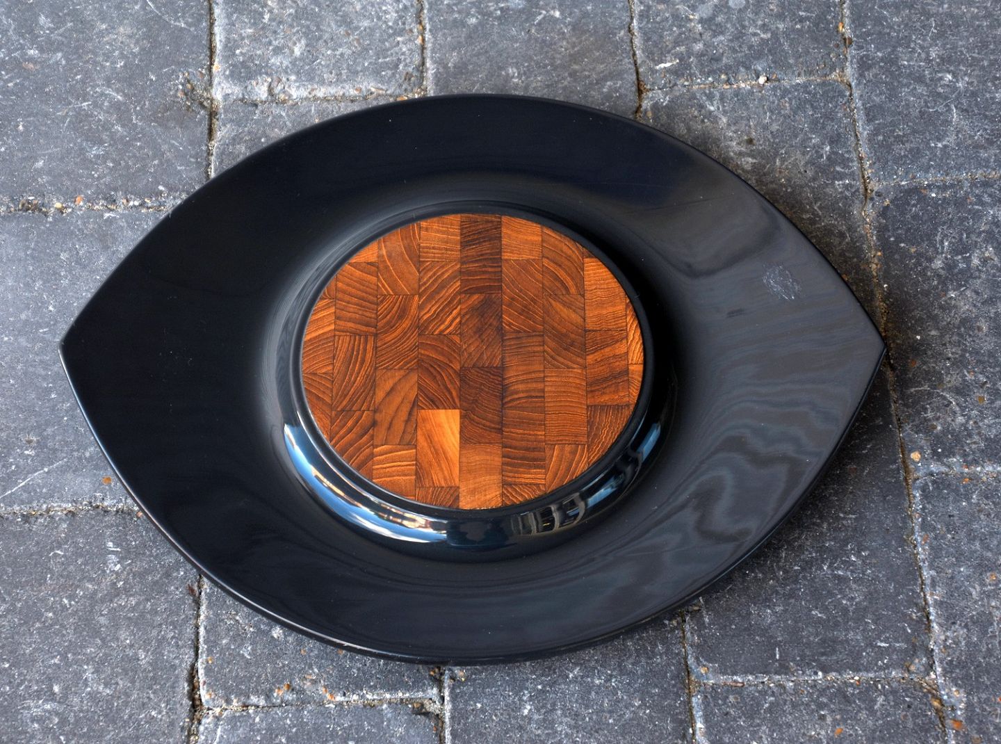 Sort plast fad med teaktræ i midten, designet af Jens Harald Quistgaard, i flot stand