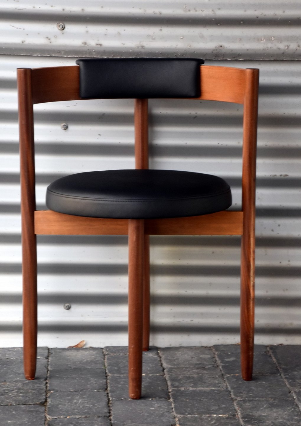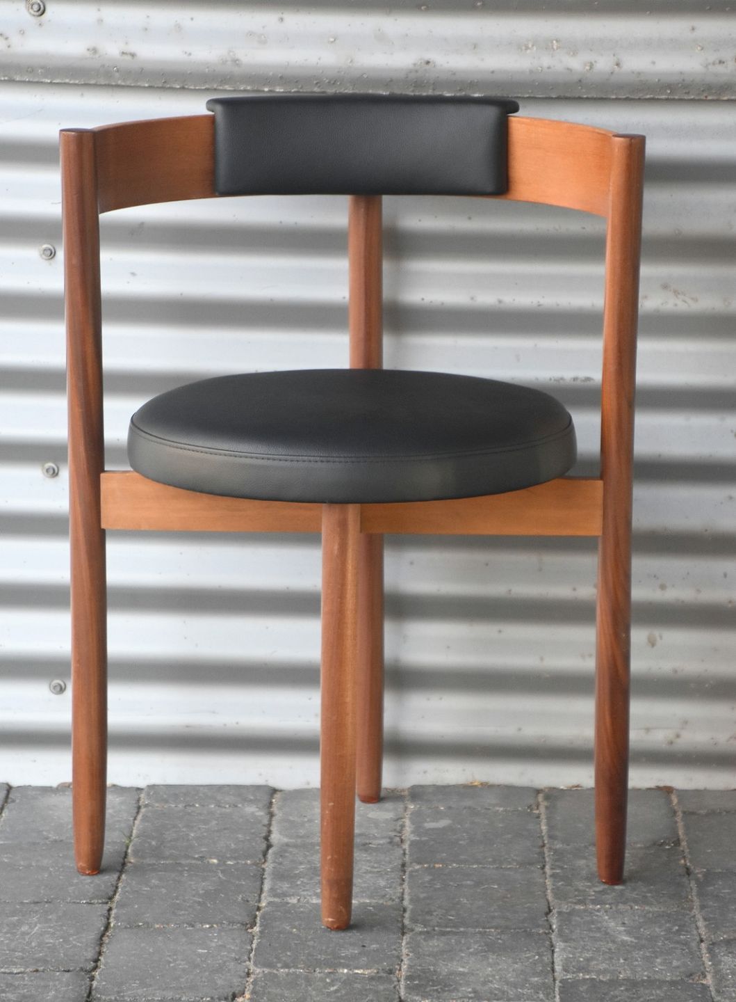 Arm Teaktræsstol, dansk møbel design, Hugo Frandsen, produceret af Børge M Søndergaard, stolen er nyrenoveret med lædersæde.