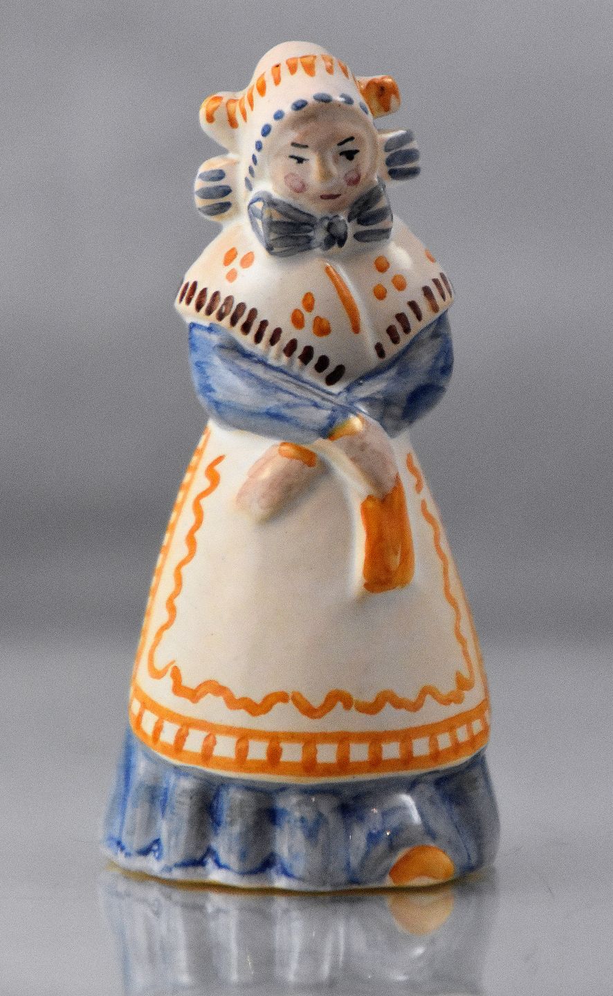 Figur i glaseret keramik med motiv af kvinde i blå egnsdragt