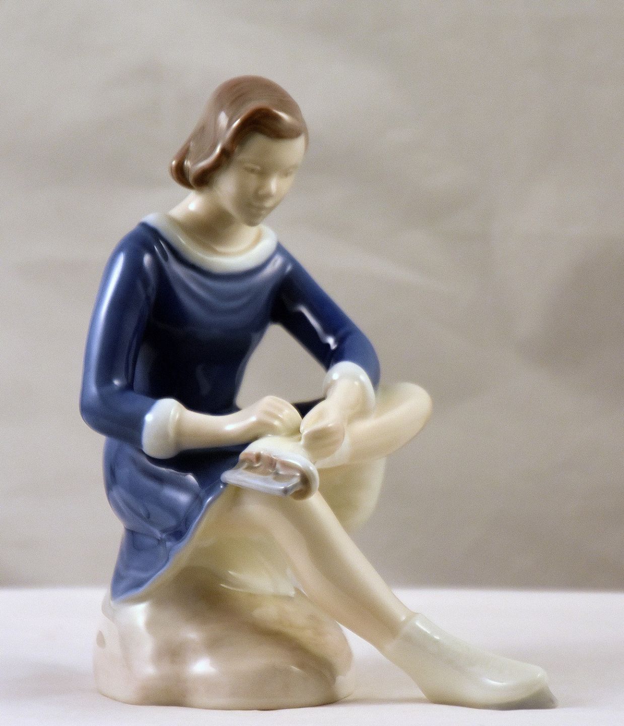 Bing & Grøndahl figur af Skøjtepige (2351). Blå kjole med hvid krave.