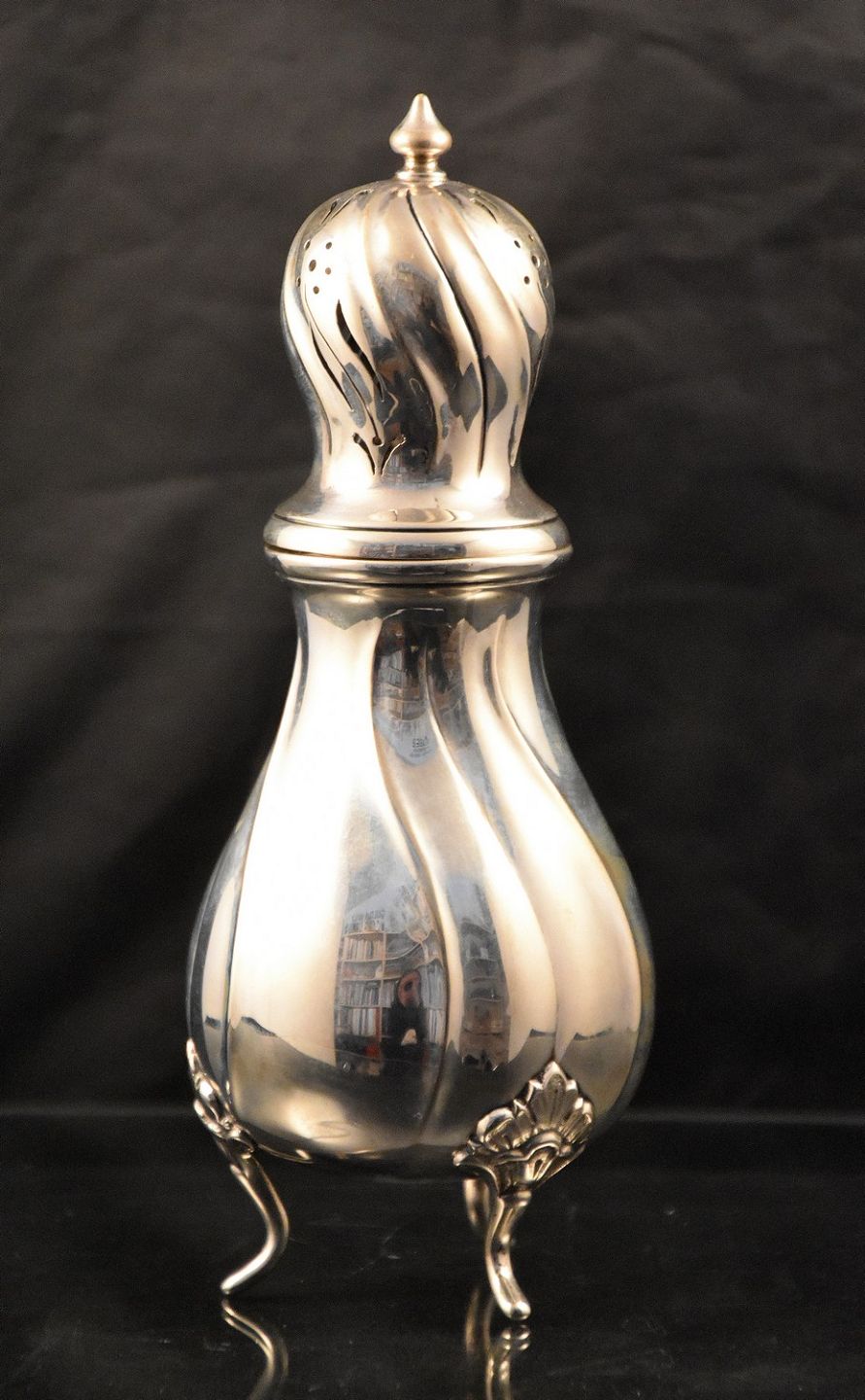 Sølv sukkerstrødåse på fødder