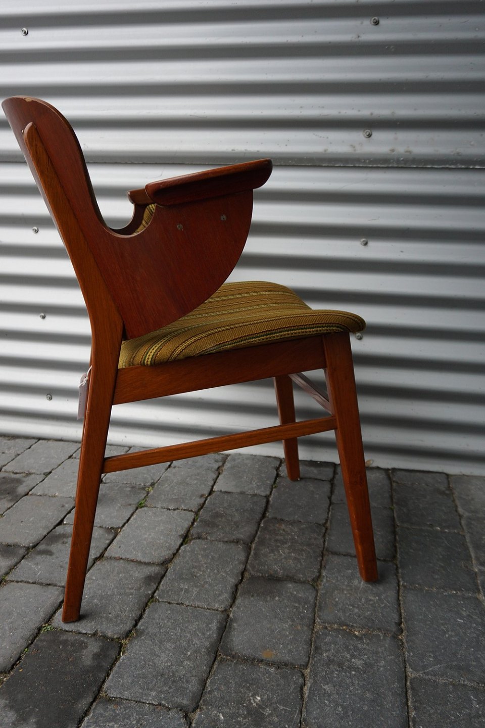 Moderne Dansk Møbeldesign. Teak/eg stol med grøn stribet stof. Originalt stof. Stolen er designet mellem 1950-1959 Bemærk lille fejl top ryg, se ekstra foto