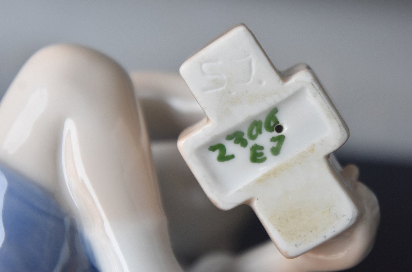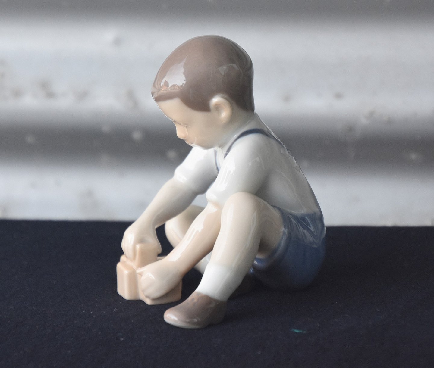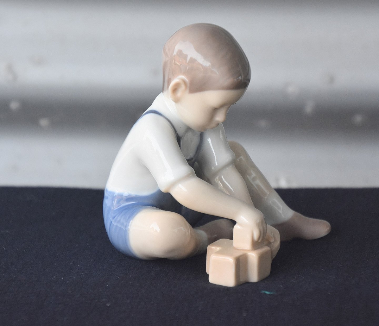 Figur i porcelæn med motiv af dreng som leger med klodser. Nr. 2306