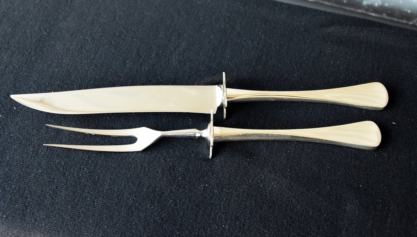 Patricia forskæresæt fra W&S Sørensen, Tranchersæt, med blad og gaffel i Stanless Steel og håndtag i sølv