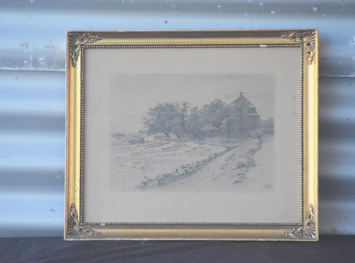 Radering: Hus ved strand af Tom Petersen 1910